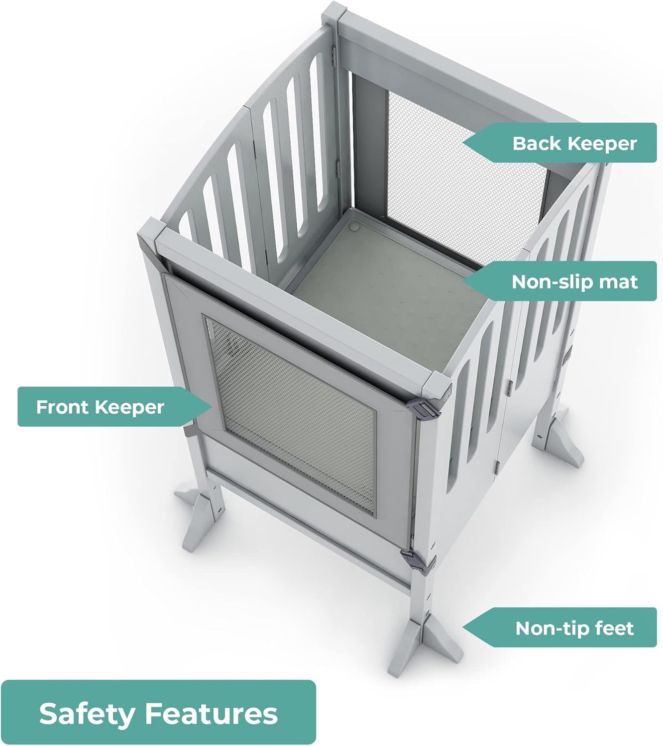 SAFE AND SECURE: Non-slip mat and Kitchen Helper Keeper included for an additional layer of security. Adult supervision required at all times.