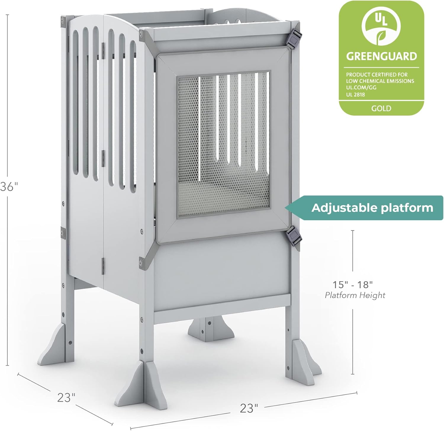 GROWS WITH YOUR CHILD: Adjust the platform to 15″ or 18″ to keep your stool at the perfect height for your growing child. Assembled dimensions: 23″L x 23″W x 36″H.
