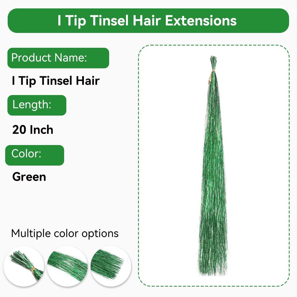 Hair Tinsel I Tip Hair Extensions Hair Tinsel Kit With Accessories I Tip (Green)