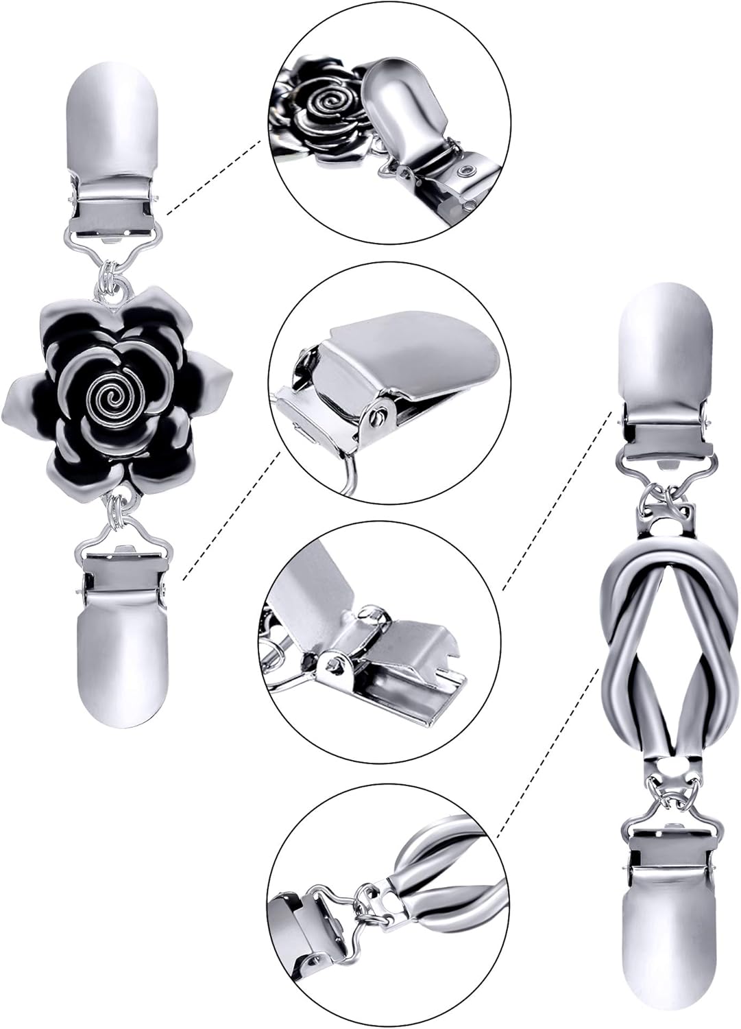 Customers appreciate the sweater clips’ exceptional build quality, noting they hold up for years and work especially well for tops and dresses. The look receives positive feedback, with one customer mentioning they’re super classy for brunch or church occasions, and customers find them worth the price. The slip resistance and size receive mixed reviews – while some say they hold securely and are perfect in size, others report they slip off and are too large. Customers disagree on the weight, with some finding them not too heavy while others consider them too heavy.