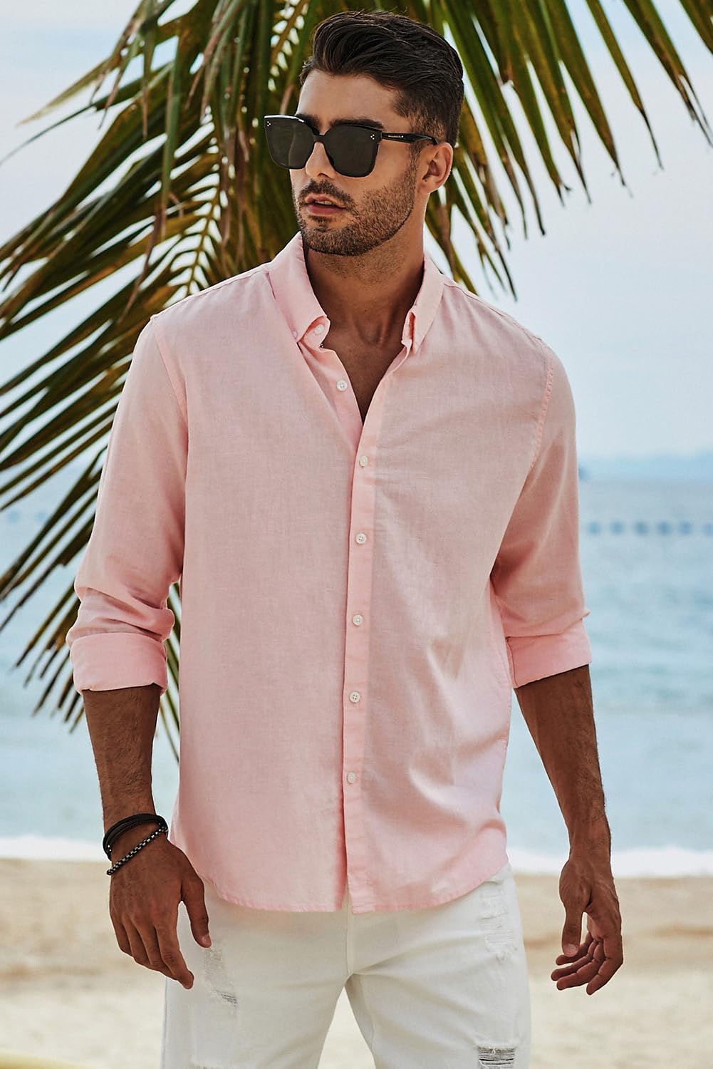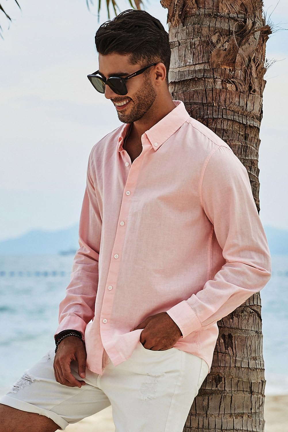 JMIERR Men’s Cotton Linen Button Down Shirt Casual Stylish Long Sleeve Business Dress Shirts