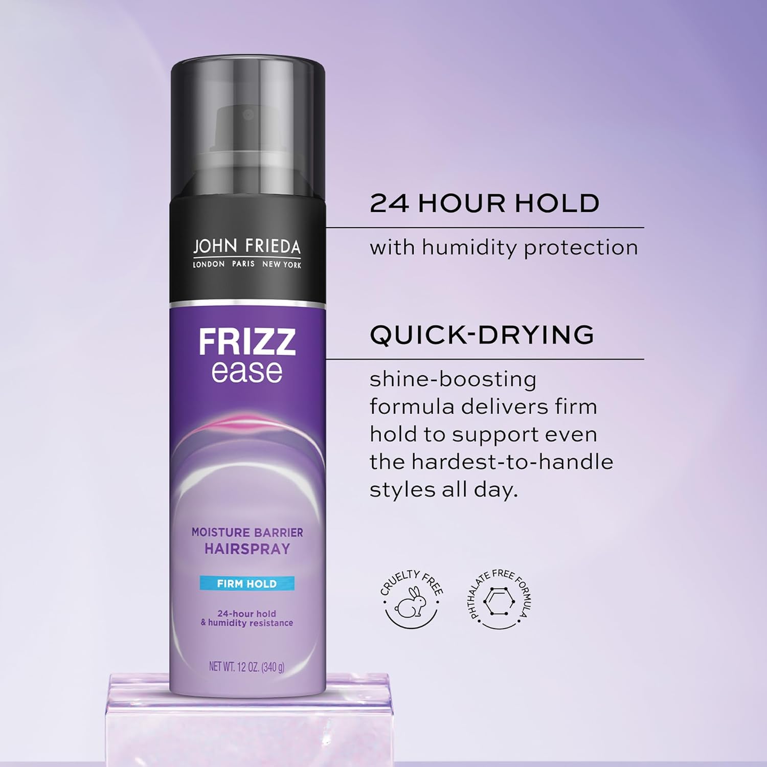 John Frieda Frizz Ease Moisture Barrier Hairspray, Firm Hold Hairspray, Seals Out Moisture, Blocks Frizz, Protects Against Heat, and Keeps Hair Straight with Long-Lasting Hold, 12 Oz, Pack of 2