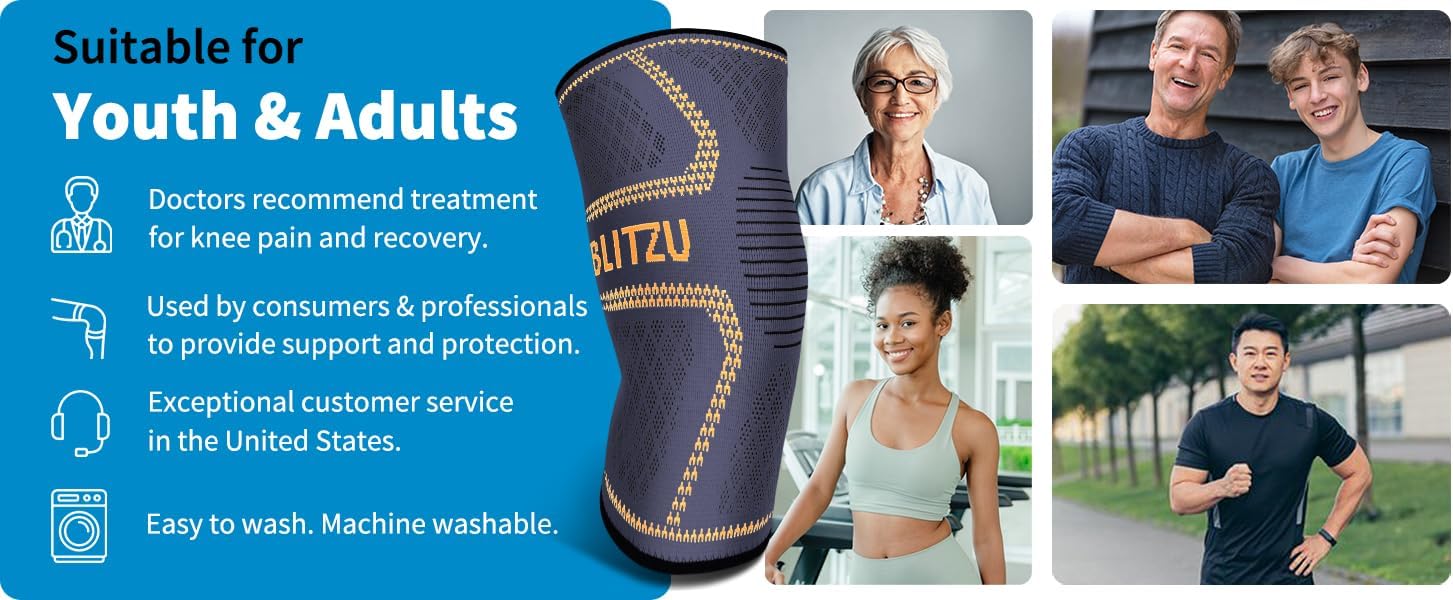 Knee Pain Relief: Fight pain, recover and get back in the game with BLITZU knee sleeves. Our knee compression sleeve activates your body’s natural pain-relieving mechanisms, provides targeted support, and promotes faster recovery from meniscus tear, ACL, PCL, MCL, arthritis, post-surgery, swelling, sports injury, joint pain as well as runners and jumpers knee problems.