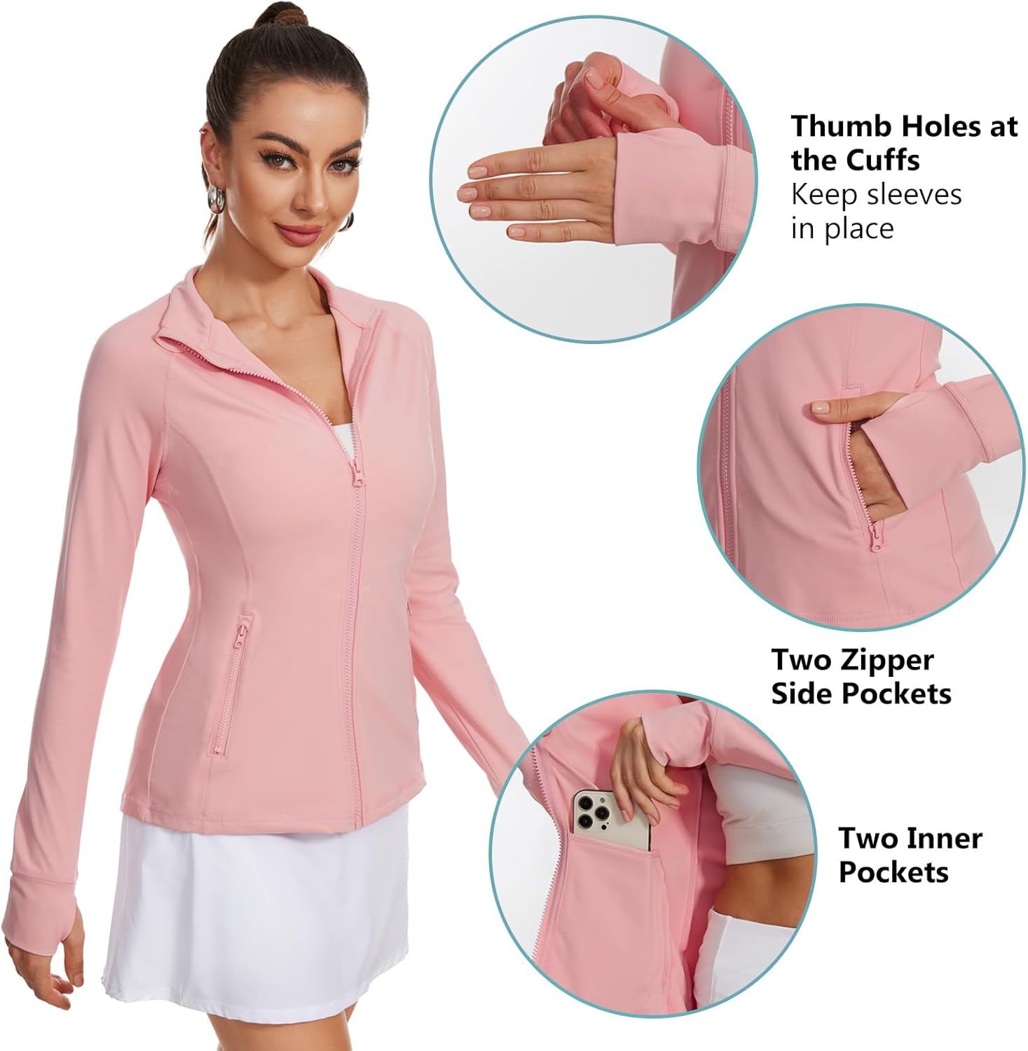 Lightbare Women’s Zip Up Athletic Jackets Lightweight Slim Fit with Pockets Thumb Holes for Workout Gym Running Yoga