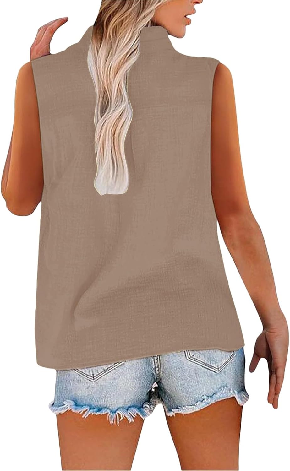 Linen Tank Tops Womens Sleeveless Tops Dressy Casual Button Down Collared Shirt Loose Fit Blouse Work Office Outfits