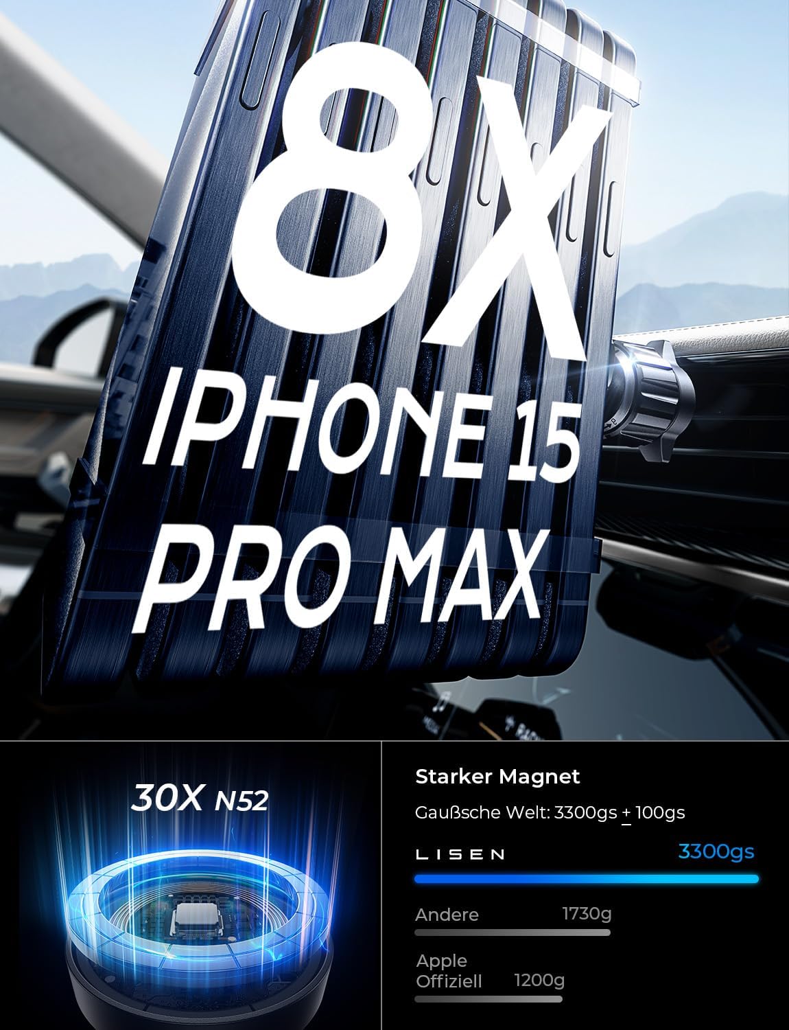 One-Click Release: Enjoy the convenience of one-click operation for easy phone placement and removal. No need to fret over complex installation steps, keeping you focused on your driving, LISEN magsafe 3 car mount fast charging Suitable for iPhone 16/15/14/12/13 series and other phones supporting MagSafe charging. We provide a one-stop solution to satisfy all your charging needs