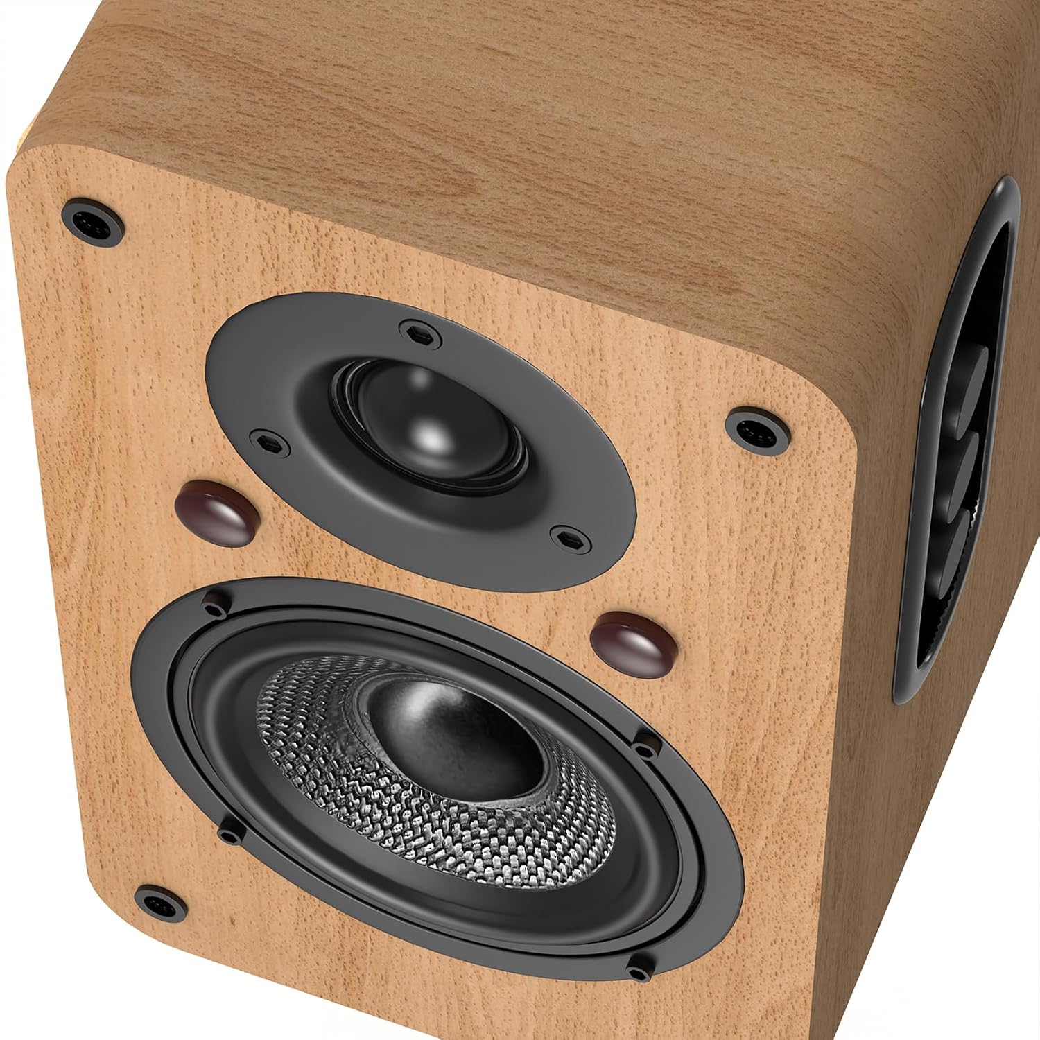 【Transient Natural Bass Speaker】Our stereo speakers feature 4-inch bass unit optimizes airflow, effectively connecting the wood fiber sound pot with the solid wood paneling on the outside of the cabinet.The opening of the bass unit inside the cabinet is larger than the standard design, making the sound effect more natural and the audio response smoother and fuller.