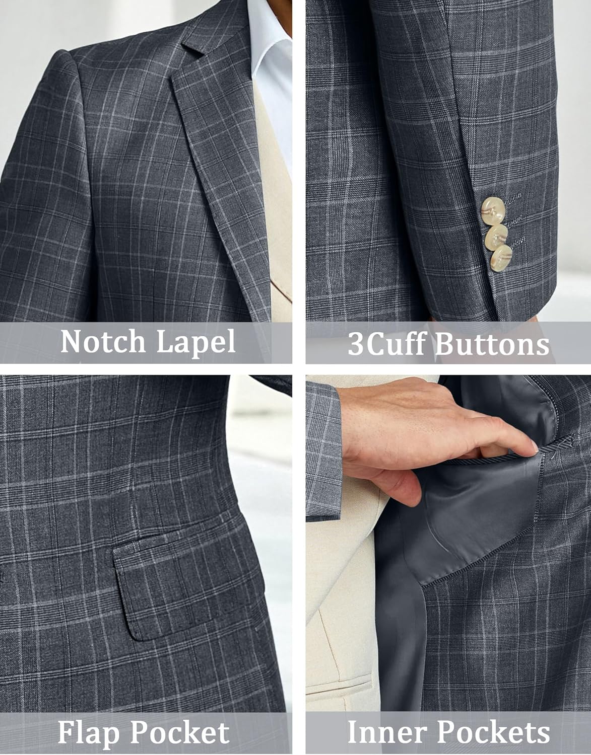 Be the first to review “Mens Blazer Casual Formal Wedding Suit Jacket Plaid Sport Coats Two Buttons Jacket Dark Grey 4X-Large”