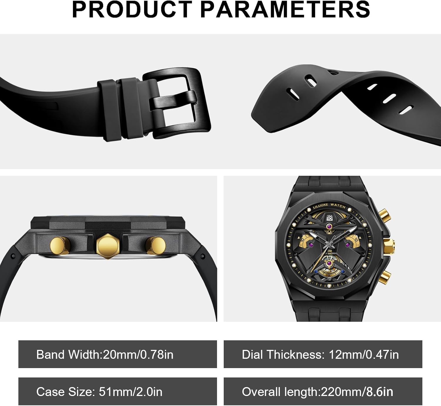 LILUOKE Mens Watches, Wrist Watches Luminous Design, Big Face Fashion Quartz Black Watch 30ATM, Casual Watch for Men Unique Gifts for Men