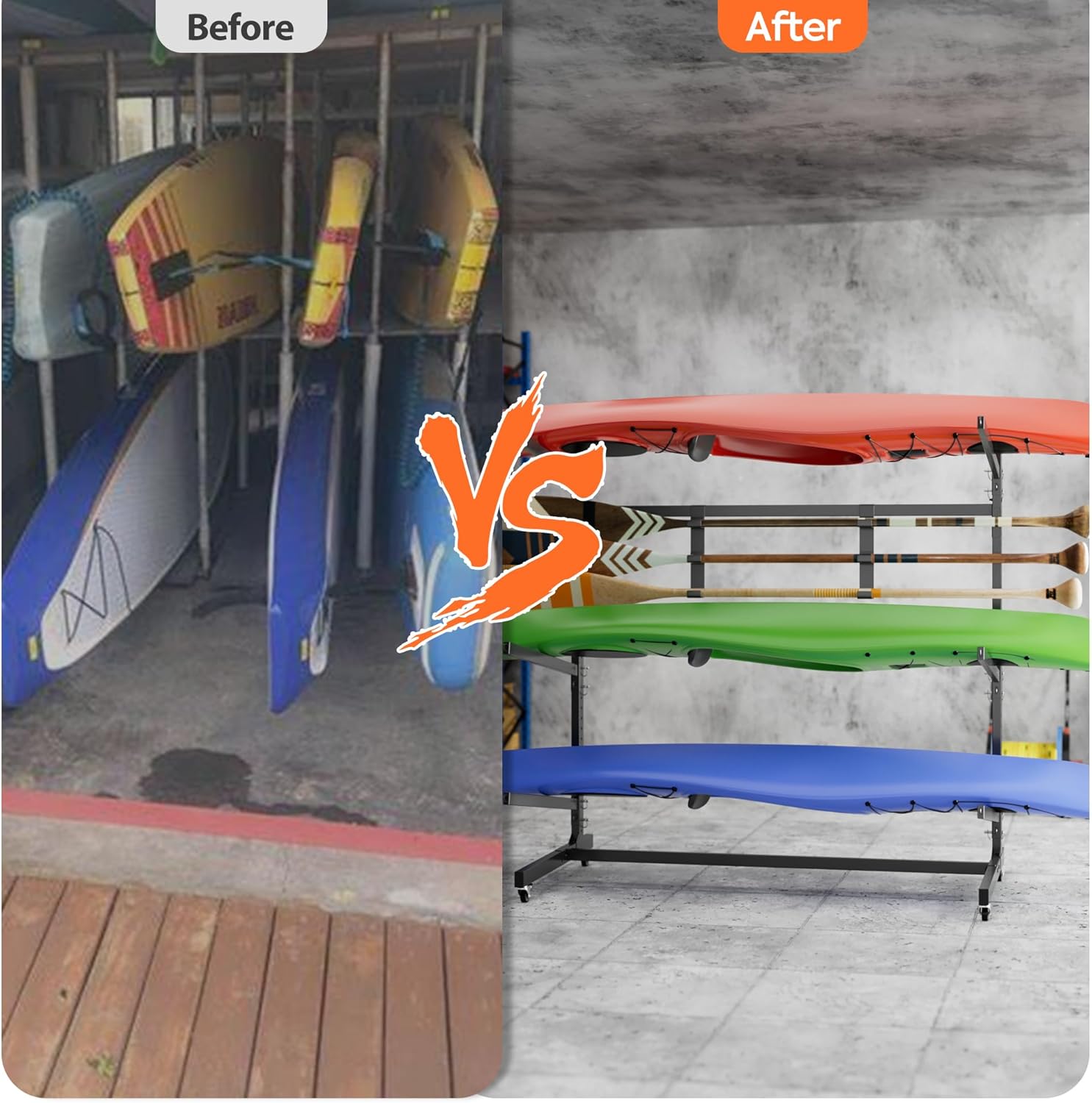 【Outdoor Watercraft Storage】Kayak storage rack holds up to 4 kayaks, canoes, standup paddle boards, and surfboards.