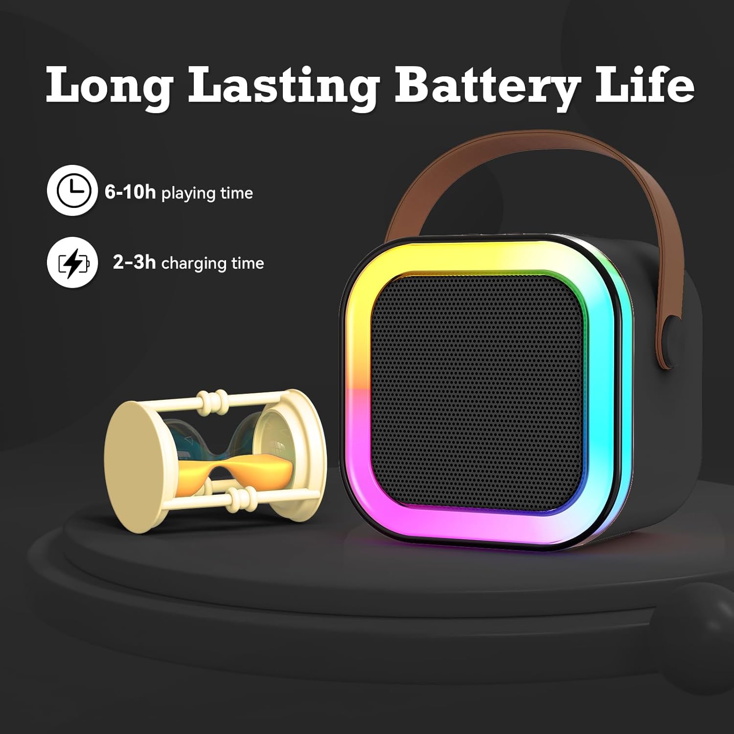 Long Playtime: The karaoke speaker with microphone come with built-in rechargeable batteries, delivering up to 6-10 hours of playtime on a single charge; Whether it’s a party, a family gathering or outdoor entertainment, it brings you hours of enjoyable singing time