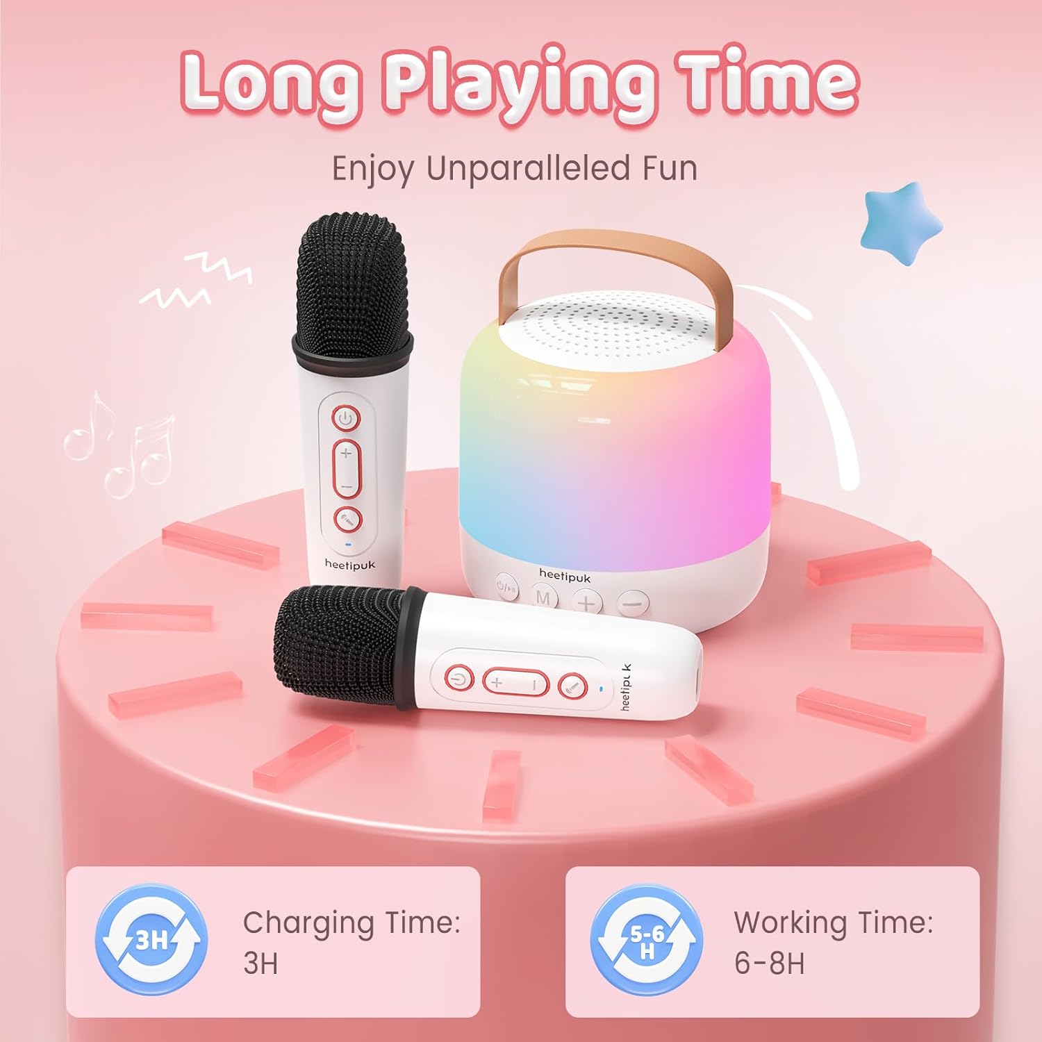 【Eternal Laughter and Memories】: The 1200mAh rechargeable battery ensures 4 hours of continuous music playback, This mini karaoke speaker is the perfect gift for children and friends! Whether it’s a family gathering or a friend get-together, you can sing together and enjoy unparalleled fun. Let the children unleash their talents in cheerful music and create unforgettable memories with friends.