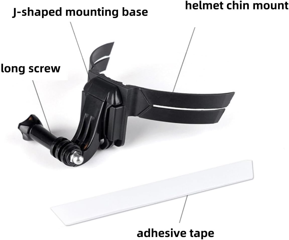 WIDE COMPATIBILITY: Fits for Gopro HERO series, for DJI OSMO series, for INSTA360 series and most other action cameras. PACKING LIST: 1*helmet chin mount, 1*set of adhesive tape, 1*J-shaped mounting base, 1*long screw, 1*camera safety strap