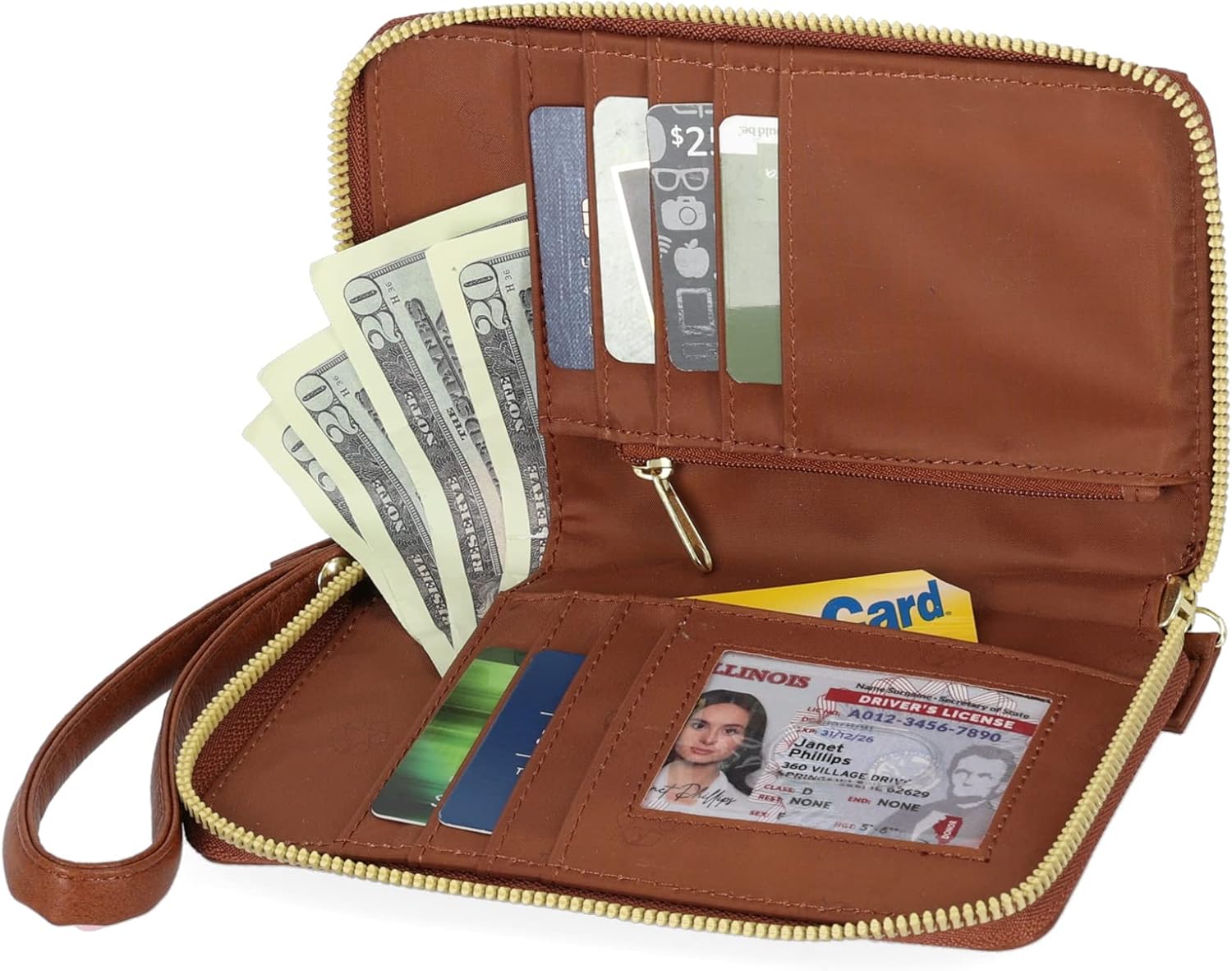 Organized Interior Storage: Features six card slots, one ID window, a zippered change pocket, a slip pocket, and a bill pocket, all in a compact layout designed to keep your everyday items sorted without extra bulk