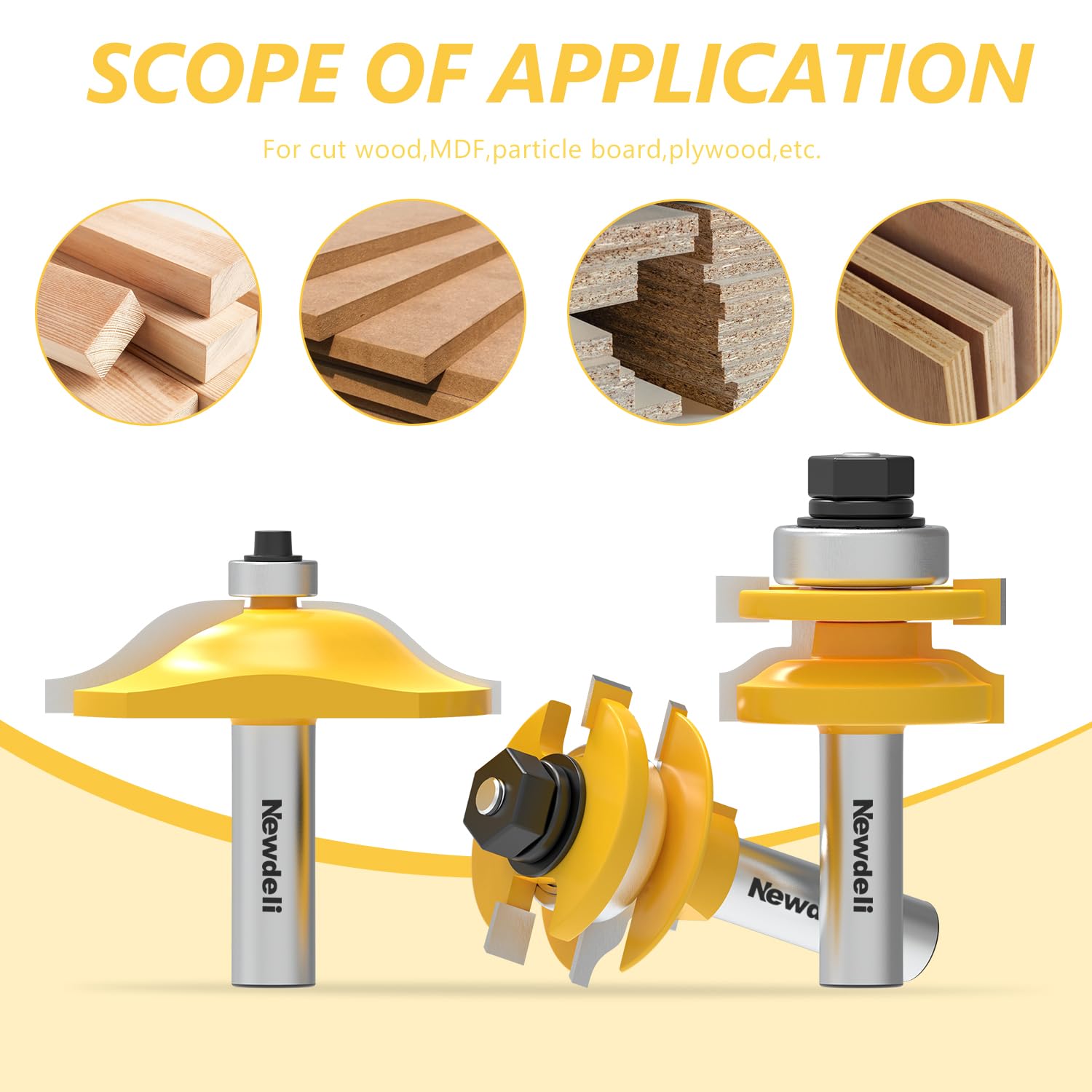 【Trusted Quality】Newdeli Raised Panel Router Bits with C3 micro-grain tungsten carbide blades, carbide Tipped for clean cutting action; The solid hardened steel body can withstand heavy use and the test of time.