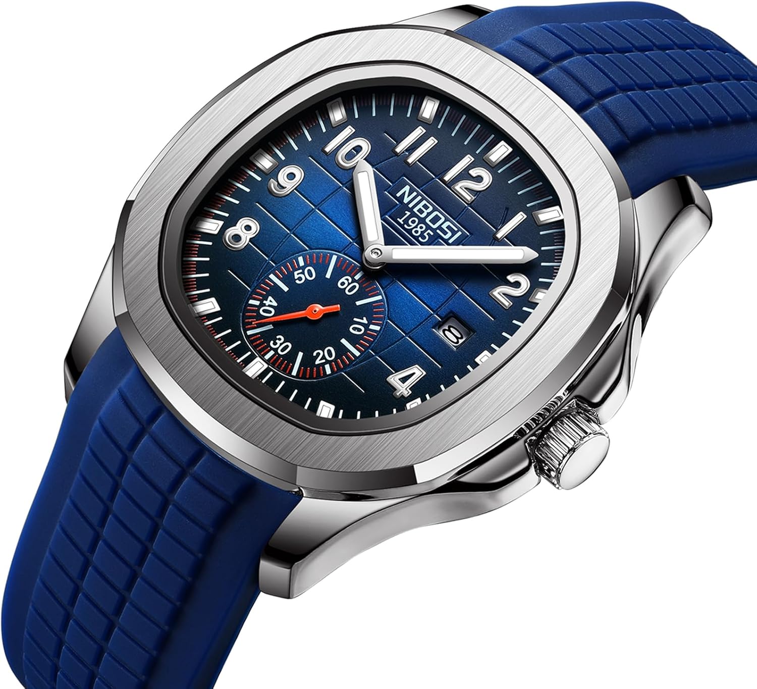 The NIBOSI men’s analog watch adopts high-quality imported quartz movement, stable performance, and accurate time. Soft silicone strap makes wrist comfortable to wear. The button battery is replaceable to ensure lifelong use.