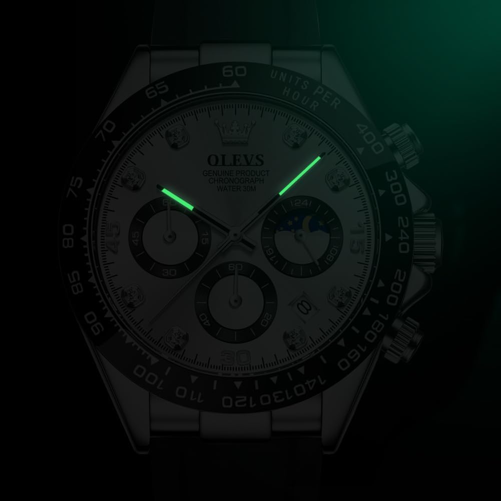 OLEVS Watches for Men Business Diamond Moon Phase Male Watch Chronograph Fashion Dress Waterproof Date Analog Waterproof Men Wrist Watch