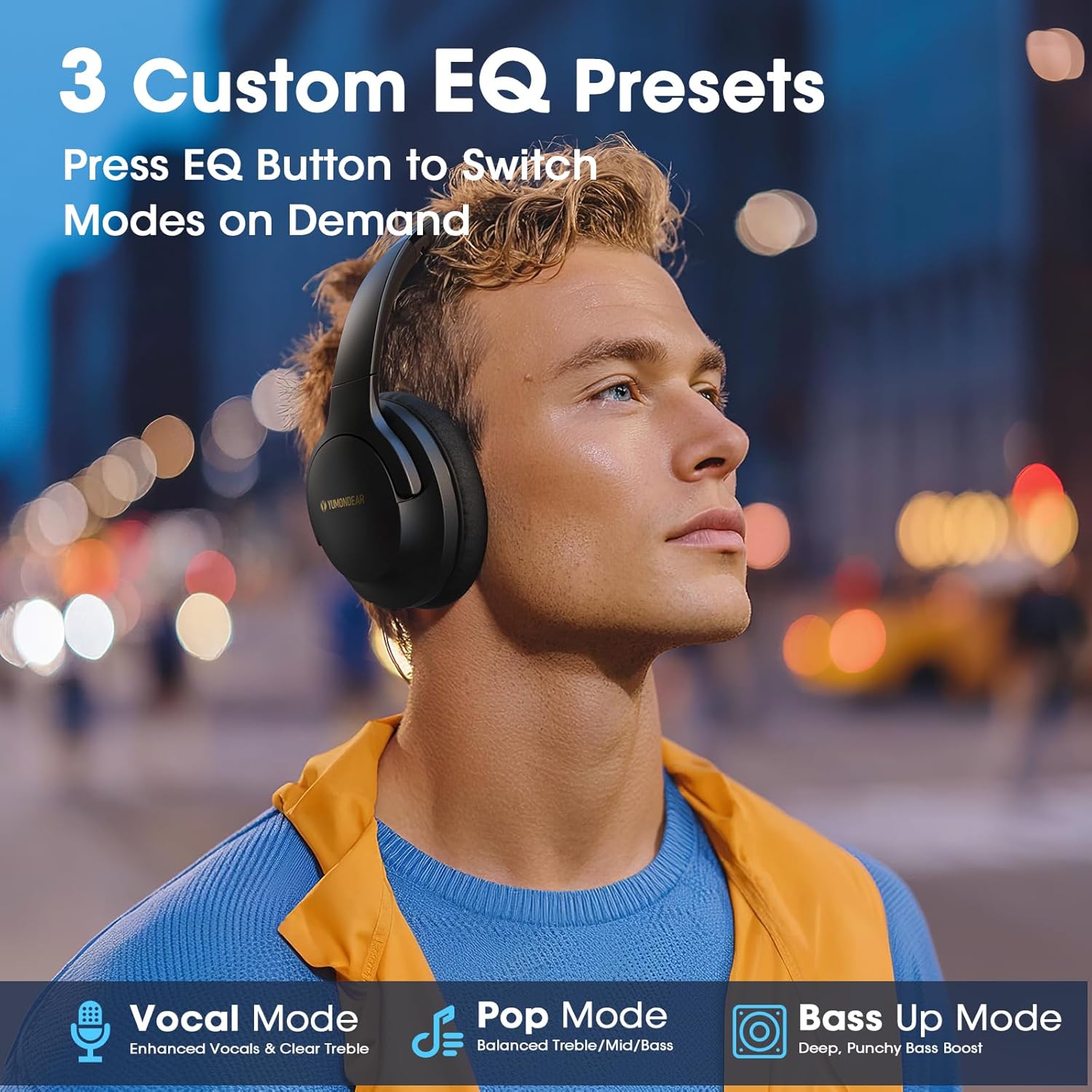 Crystal-Clear ENC Call Quality & EQ /Hi-Fi Audio: Enjoy studio-grade sound with our bluetooth headphones over the ear, powered by 40mm dynamic drivers and 3 EQ modes (balanced, bass boost, high-definition). The built-in ENC microphone eliminates 90% of ambient noise during calls, ensuring your voice stays crisp even on busy streets. Perfect for remote work or chatting, these noise cancelling bluetooth headphones (call-focused) deliver immersive audio for music, movies, and distraction-free conversations.