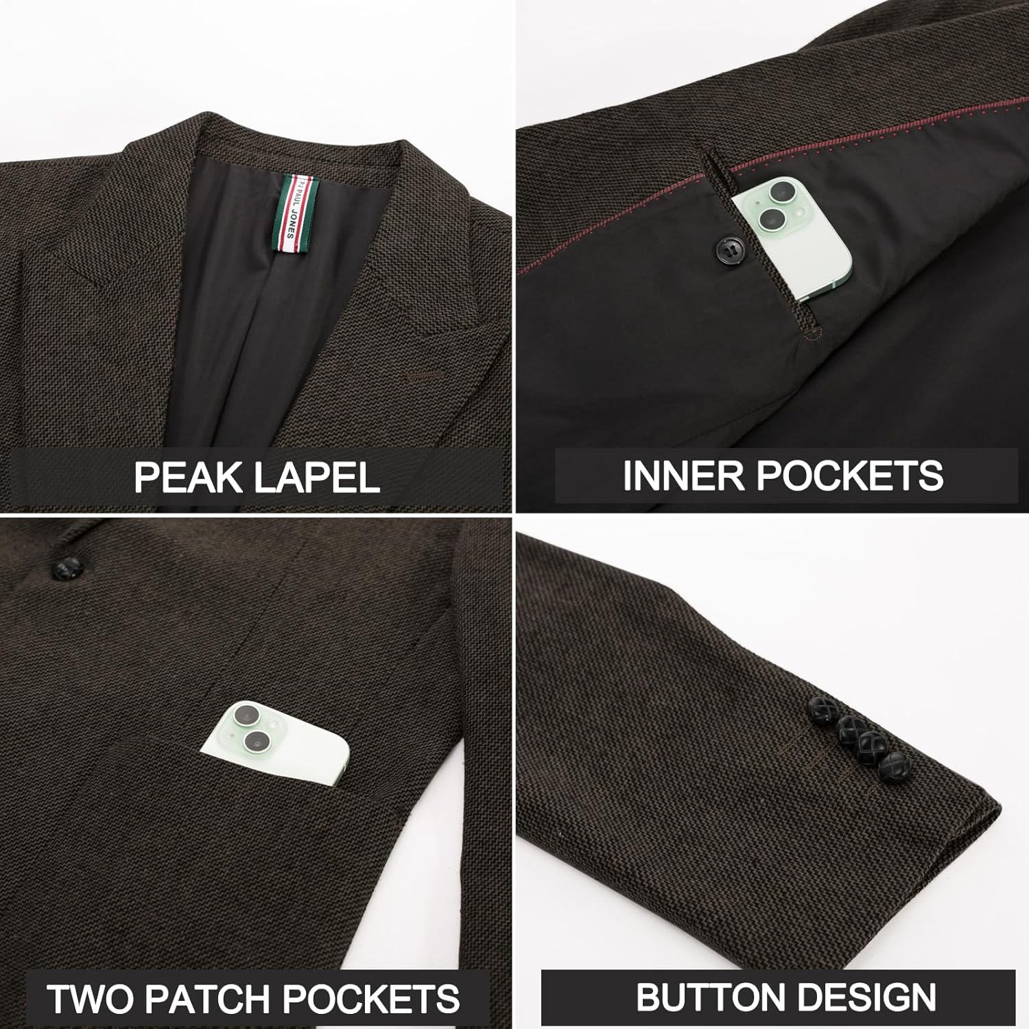 Be the first to review “PJ PAUL JONES Men’s Herringbone Tweed Blazer Vintage Wool Blend Two Button Sport Coat Jacket with Pockets”