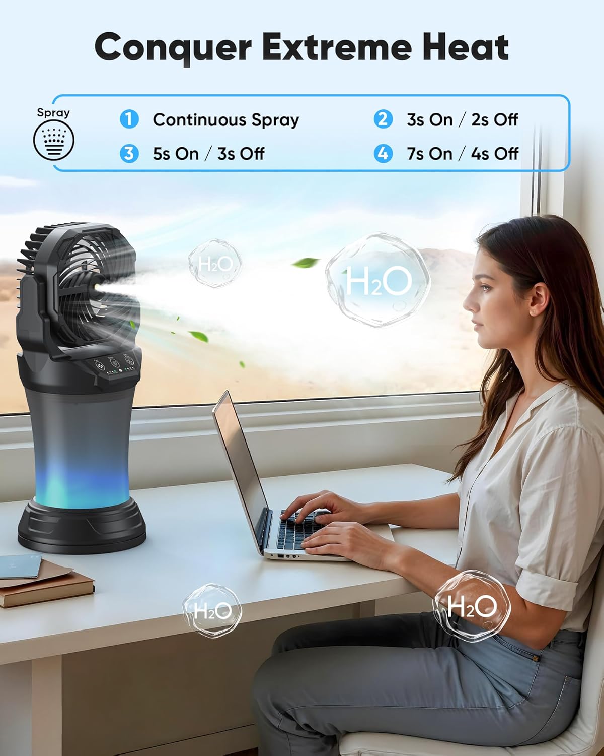 Ultra-Portable & Durable: At just 4.7lbs with a comfy handle, this portable misting fan goes anywhere – toss it in your camping backpack, beach tote, or car trunk. The rugged ABS body handles adventures from hiking trails to festival crowds with ease