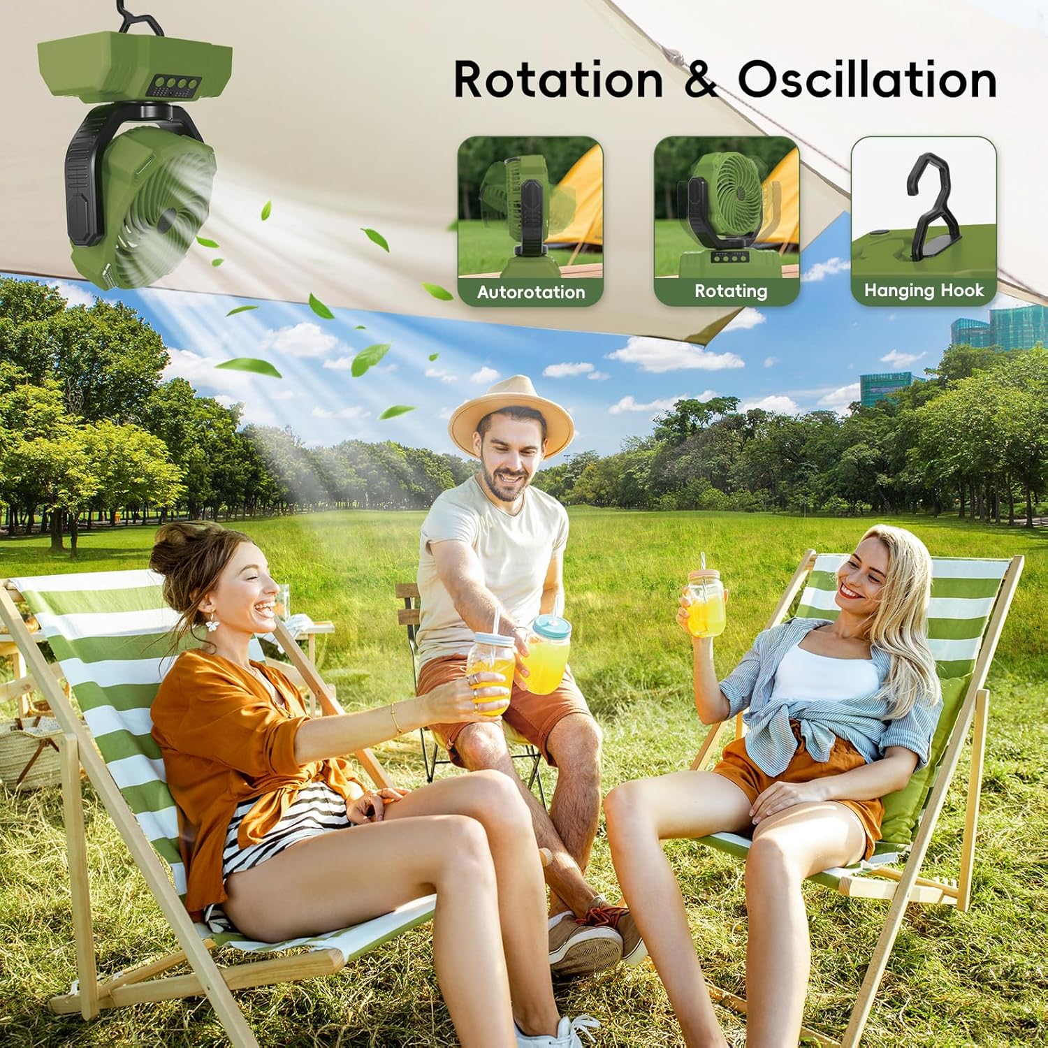 Portable Fan & Mobile Power: This camping fan equipped with 10,000 mAh battery can last for 8-30 hours of blowing. There are 5V-2A Type-C and USB output charging ports, which can reverse charge different models of mobile phones, headphones, GPS and other devices
