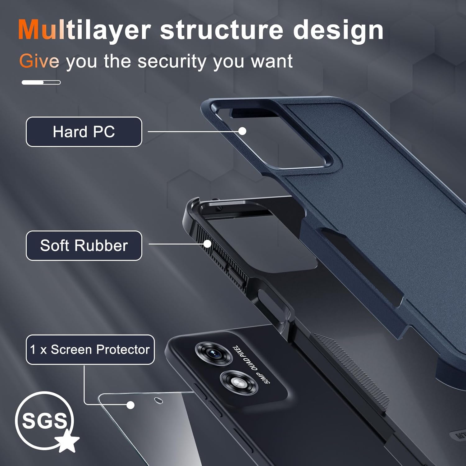 Military Grade Protection: Hard PC back cover,soft TPU bumper combined to provide dual layer protection. The shock-absorbing TPU bumper keep your phone safe from the occasional drop,while its PC back will protect your phone from daily wear and tear.