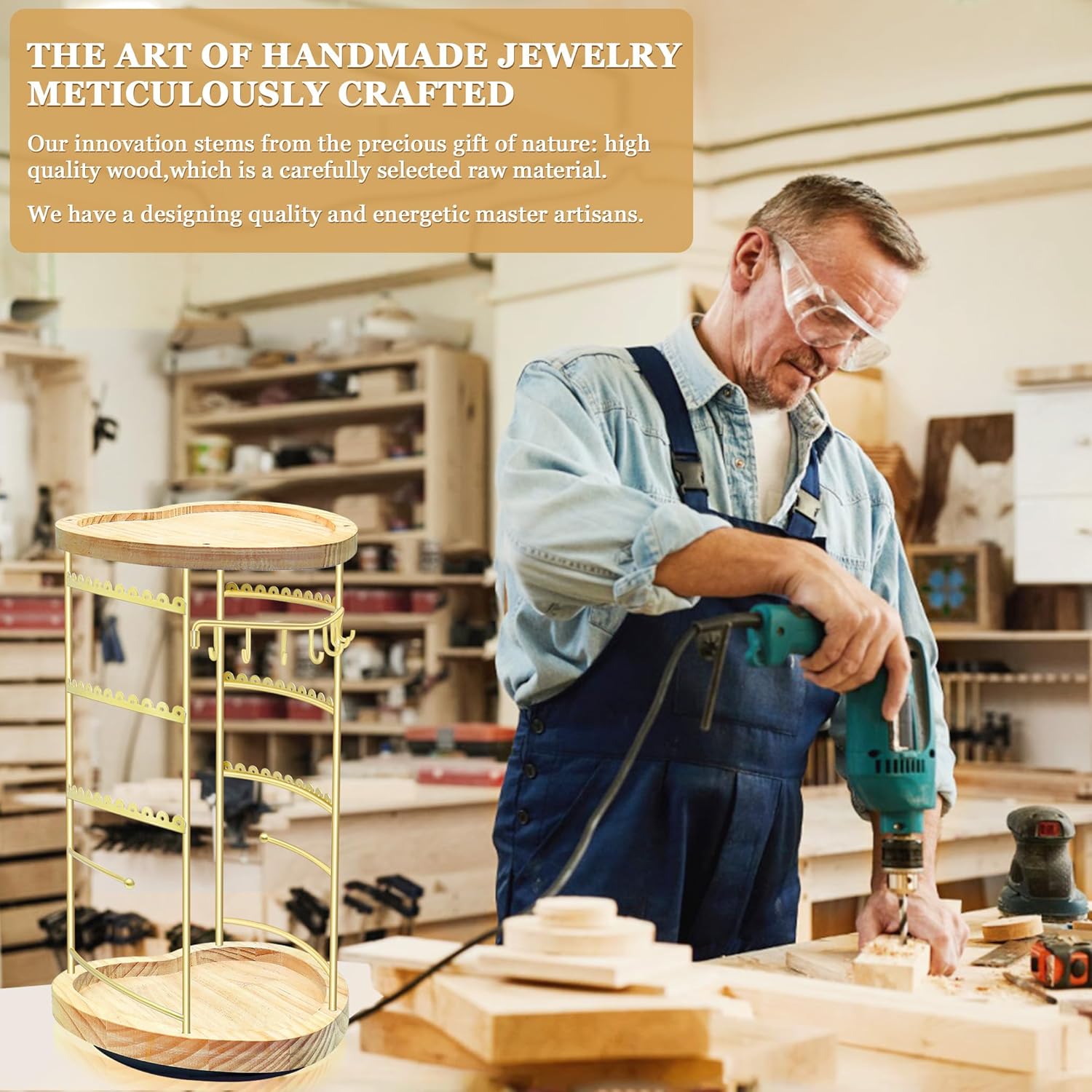 Rotating Earring Holder Organizer, Heart Shape Jewelry Organizer Stand and Storage, Wooden Earring Necklace Display for Mom Women Girls, Jewelry Holder Rack for Bracelets Ring