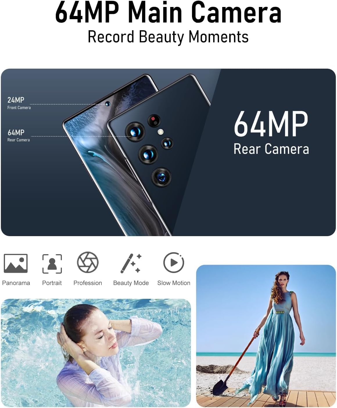 ā”ć6GB+256GB & Octa-Core 5G ProcessorćThe cell phone is equipped with the powerful Octa-core processor, which can dramatically improve the running speed, network, frame rate and picture smoothness, you will no more need to suffer from phone lag. 6GB RAM + 256GB ROM, which support multiple software to run smoothly at the same time, allowing you to enjoy many videos and games download to maximize your storage needs.