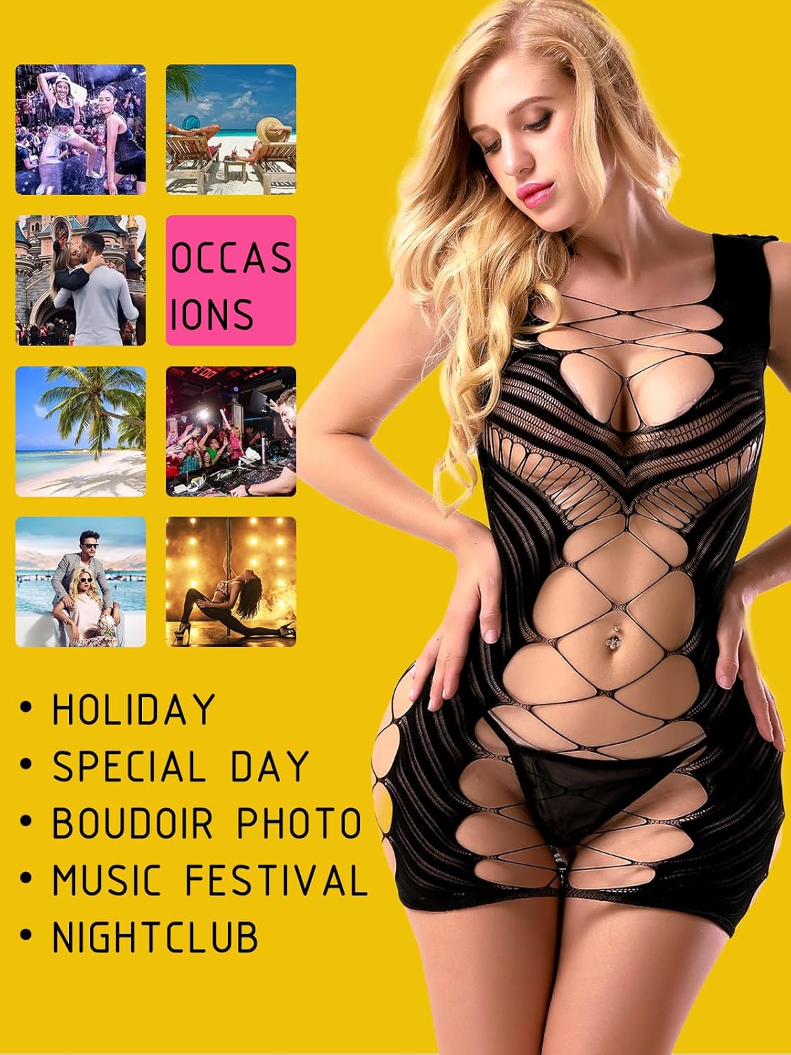 Sexy Lingerie for Women Fishnet Halter Chemise Deep V Hot Mesh Mini Dress Bodysuit Valentine’s Day Stripper Outfits