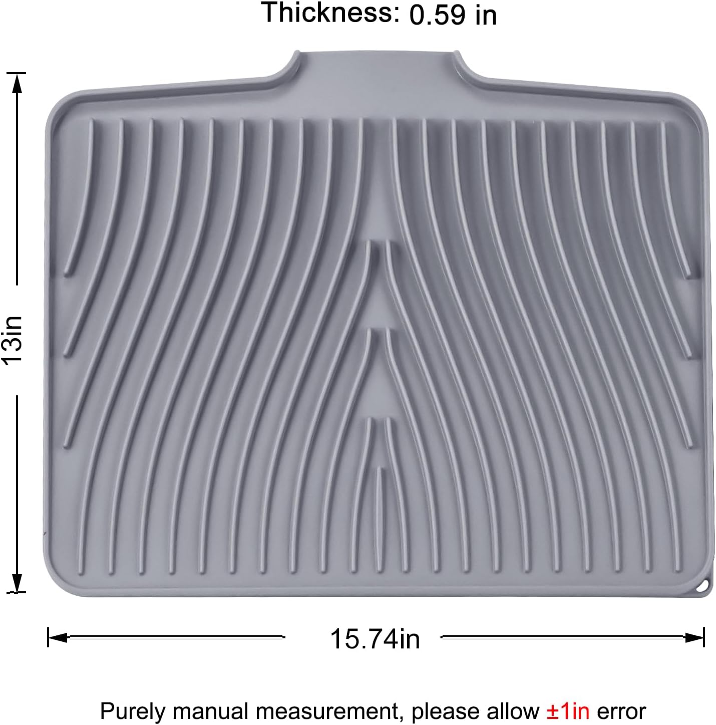 Silicone Dish Drying Mat for Kitchen Counter, Dish Drying Pad, Non-Slip Drain Pad with Built-in Drain, Heat Resistant Stone Drying Mat(15.8″ x 13″, Grey)
