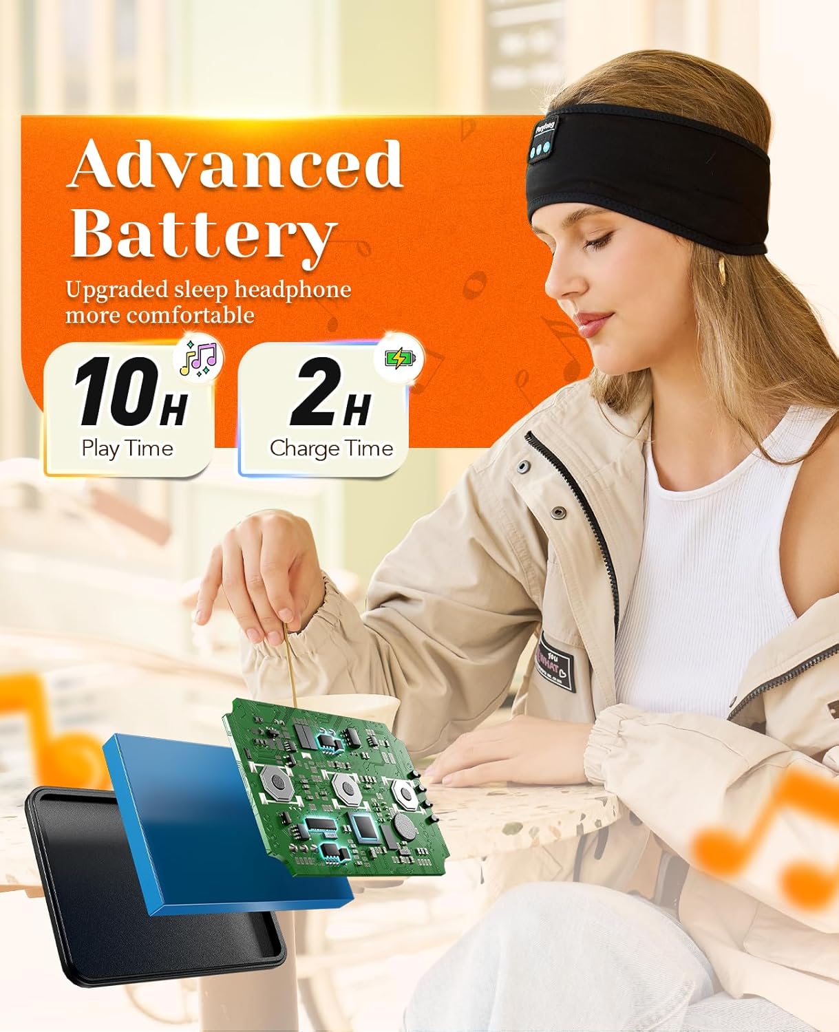 【Longer Play Time and Premium Audio】Sleeping headphones bluetooth 5.3 HiFi advanced sound technology wireless bluetooth headphones offer an upgraded rechargeable lithium battery, charge about 2-2.5 hours provide more than 10 hours of playing time. Quality chipsets ensure clear sound and lossless music even during sports. Built-in microphone and volume control buttons which enable users to answer hands-free cellphone calls and handle previous/next song without having to use your cellphone