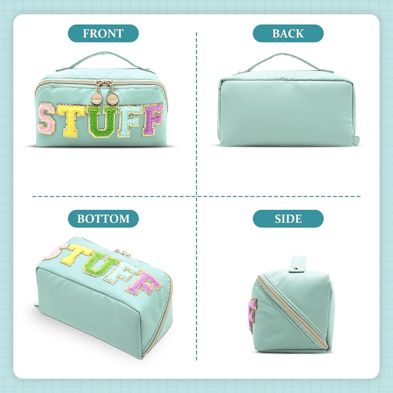 Be the first to review “Stoney Clover Preppy Large Capacity Travel Cosmetic Bag, Chenille Letter Open Flat Nylon Stuff Makeup Bag, Preppy Patch Better Belt Everything, Green”