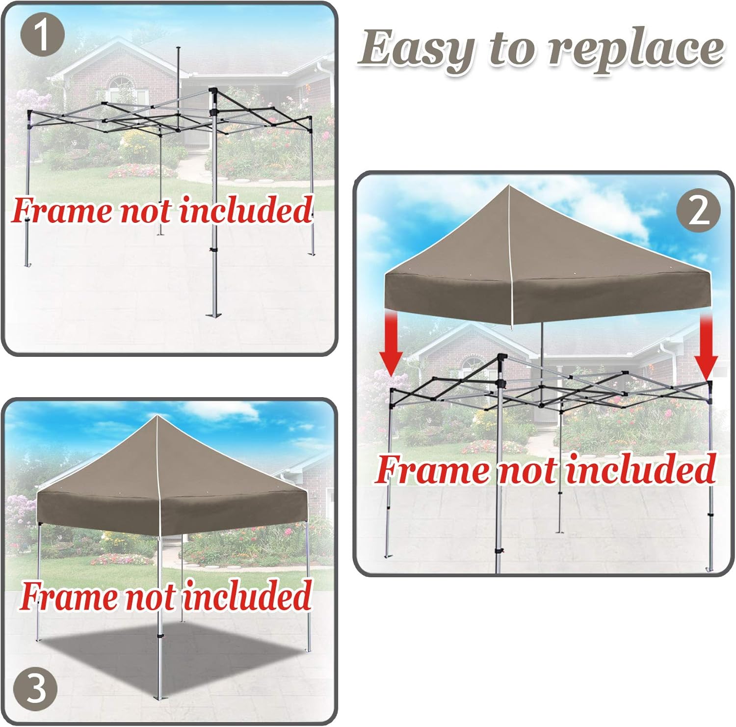 STRONG CAMEL Ez pop Up Canopy Top Replacement Canopy Cover for 10’X10′ Gazebo Patio Pavilion Gazebo Sunshade Tent Canopy Top Cover ONLY (Taupe)