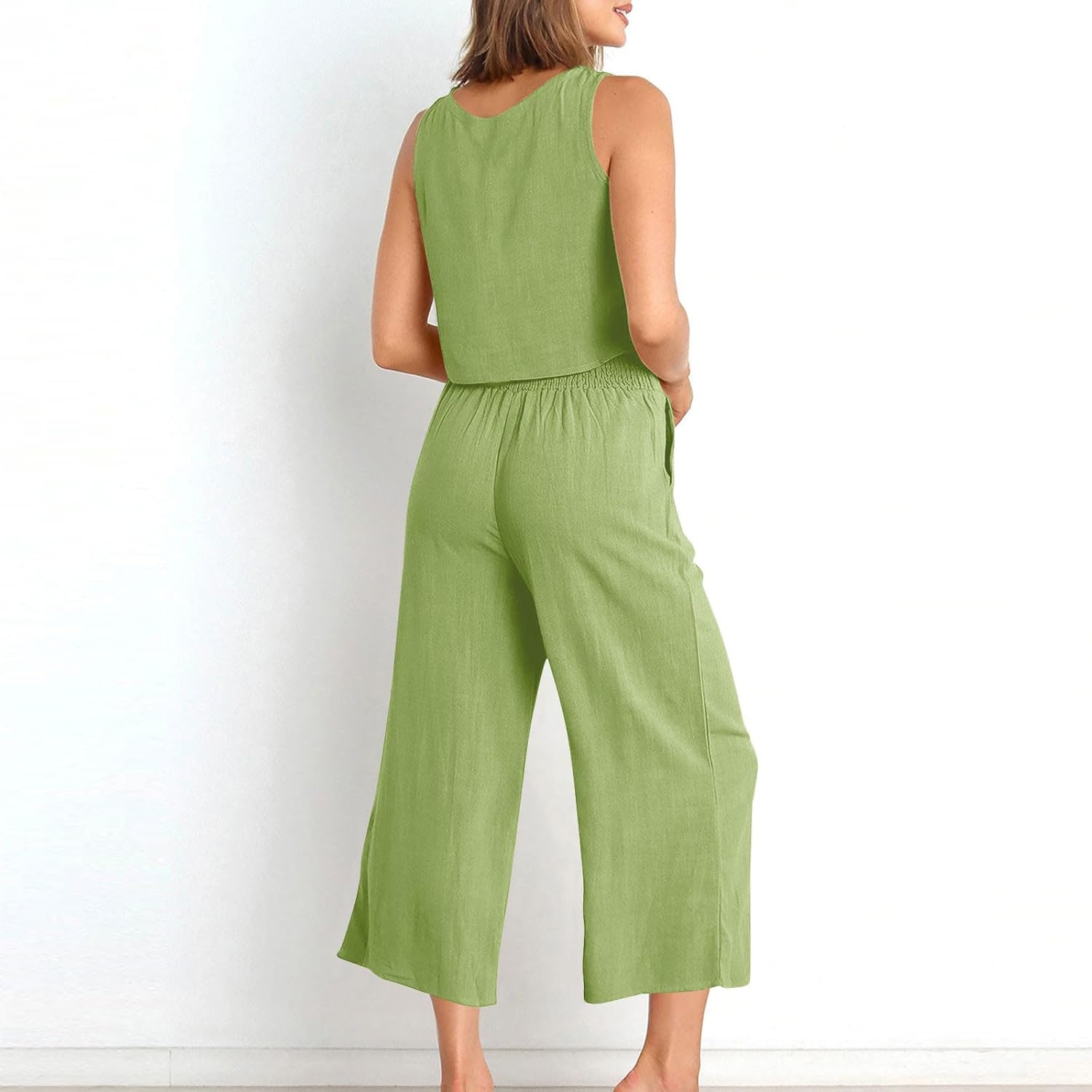 Summer 2 Piece Sets for Women 2025 Linen Plus Size Round Neck Sleeveless Outfits Pajama Casual Vacation Sexy Clothing