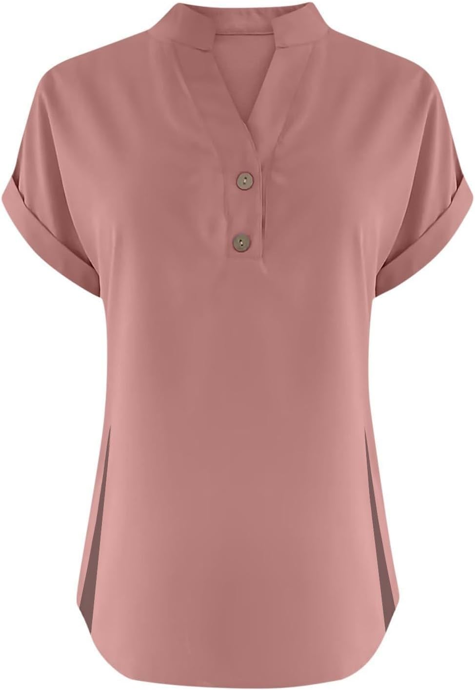 Summer Cotton Linen Shirts for Women 2025 Button Down Short Sleeve V Neck Shirts Solid Color Comfy Blouses Tunic Tops