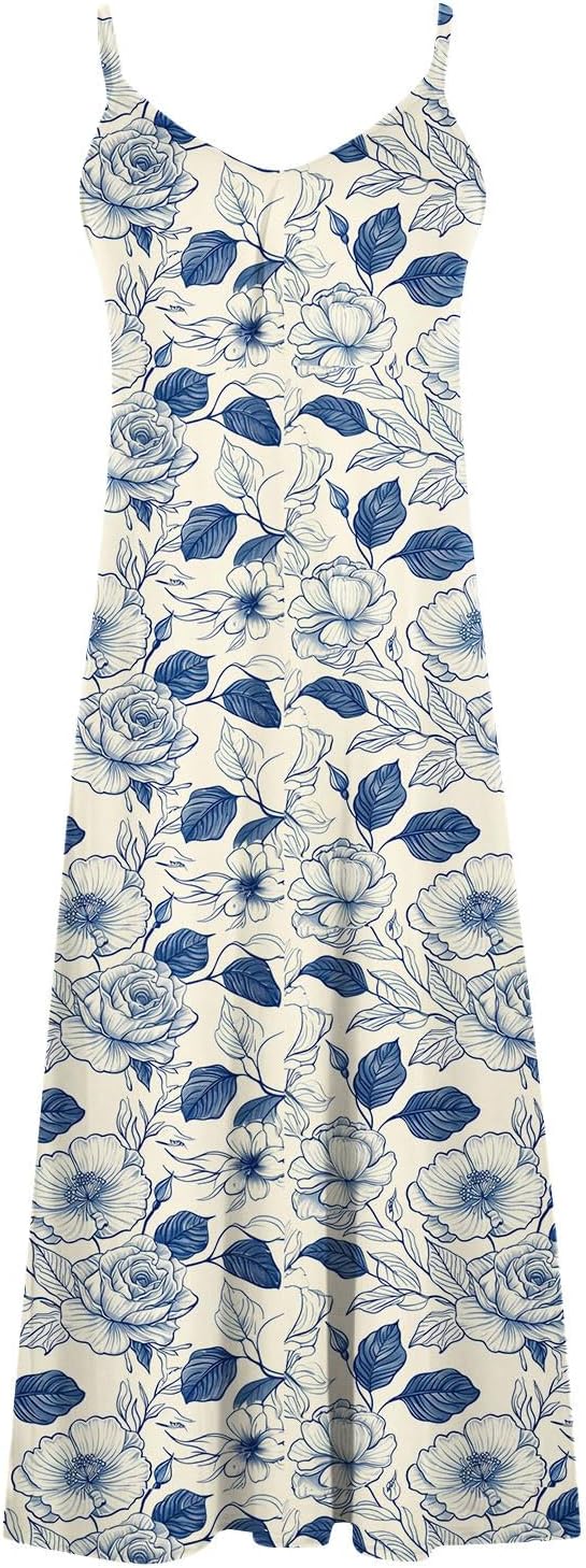 Summer Dresses for Women 2025 Beach Vacation Sexy Spaghetti Strap v Neck Sun Dress Flowy Maxi Long Sundresses Trendy