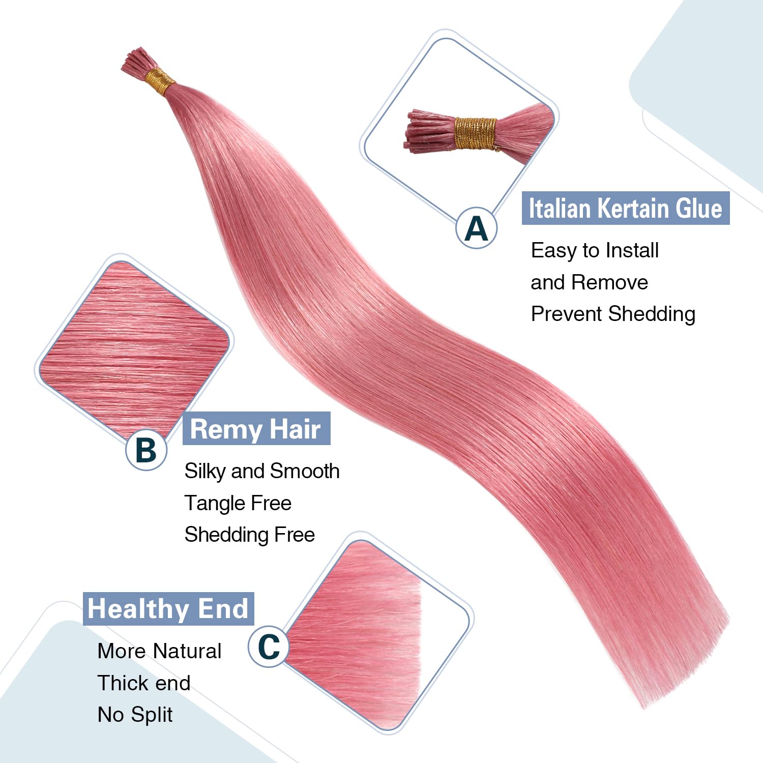 Sunya I Tip Hair Extensions Human Hair Hot Pink 18 Inch I Tip Hair Extensions Real Human Hair Cold Fusion Pre Bonded Pink I Tip Hair Extensions 25g 25 Strands/Pack