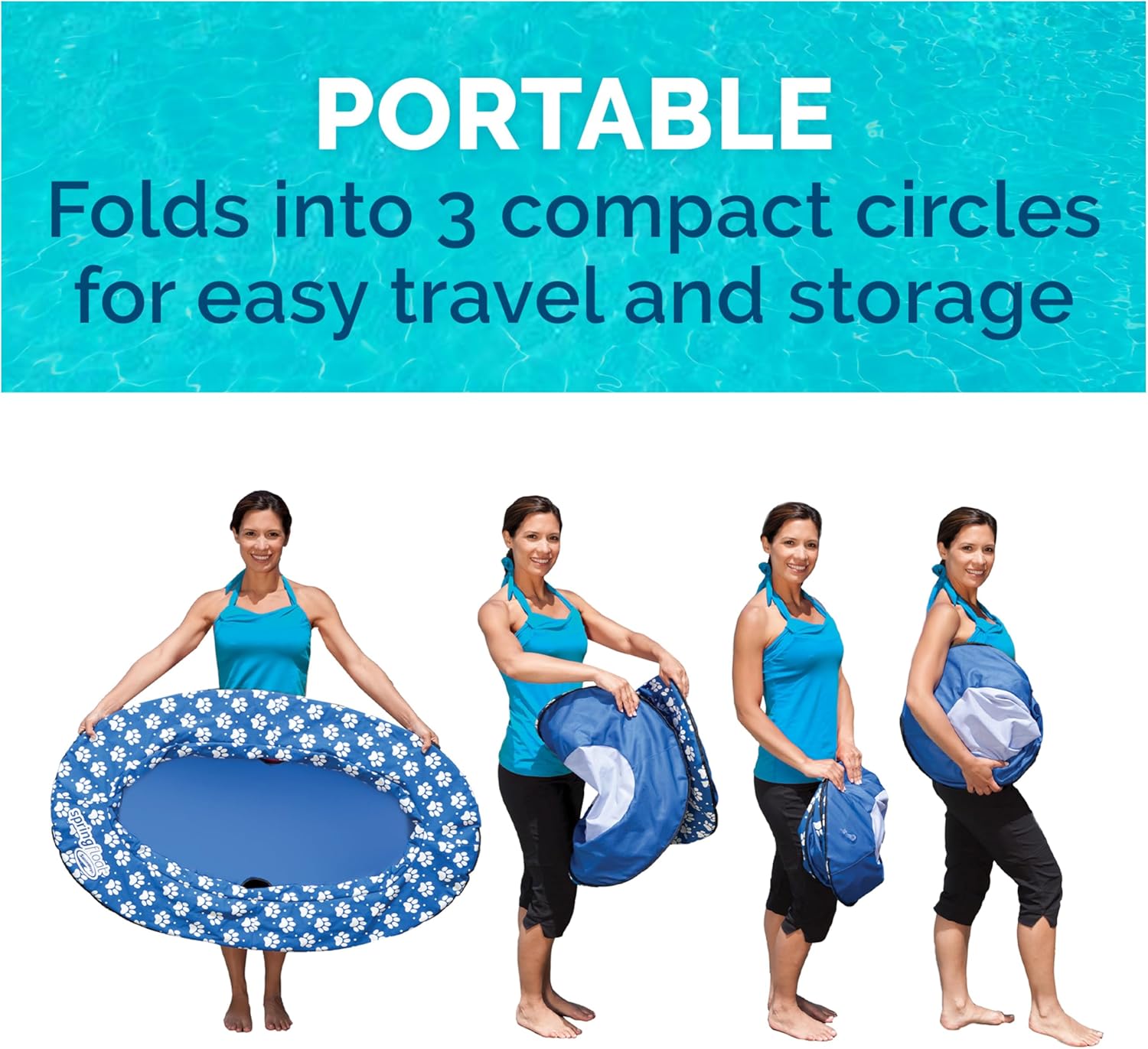 PORTABLE AND EASY TO CARRY: Folds down flat into three compact circles and includes a reusable carry bag for easy portability and storage, making it great for trips to the pool or travel