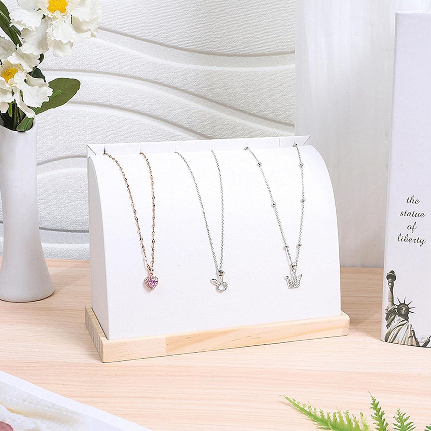 TANG SONG Cambered Wooden Leather Soft Mat Multiple Necklace Display Stand Necklace Chains Organizer Holder for Home (White)