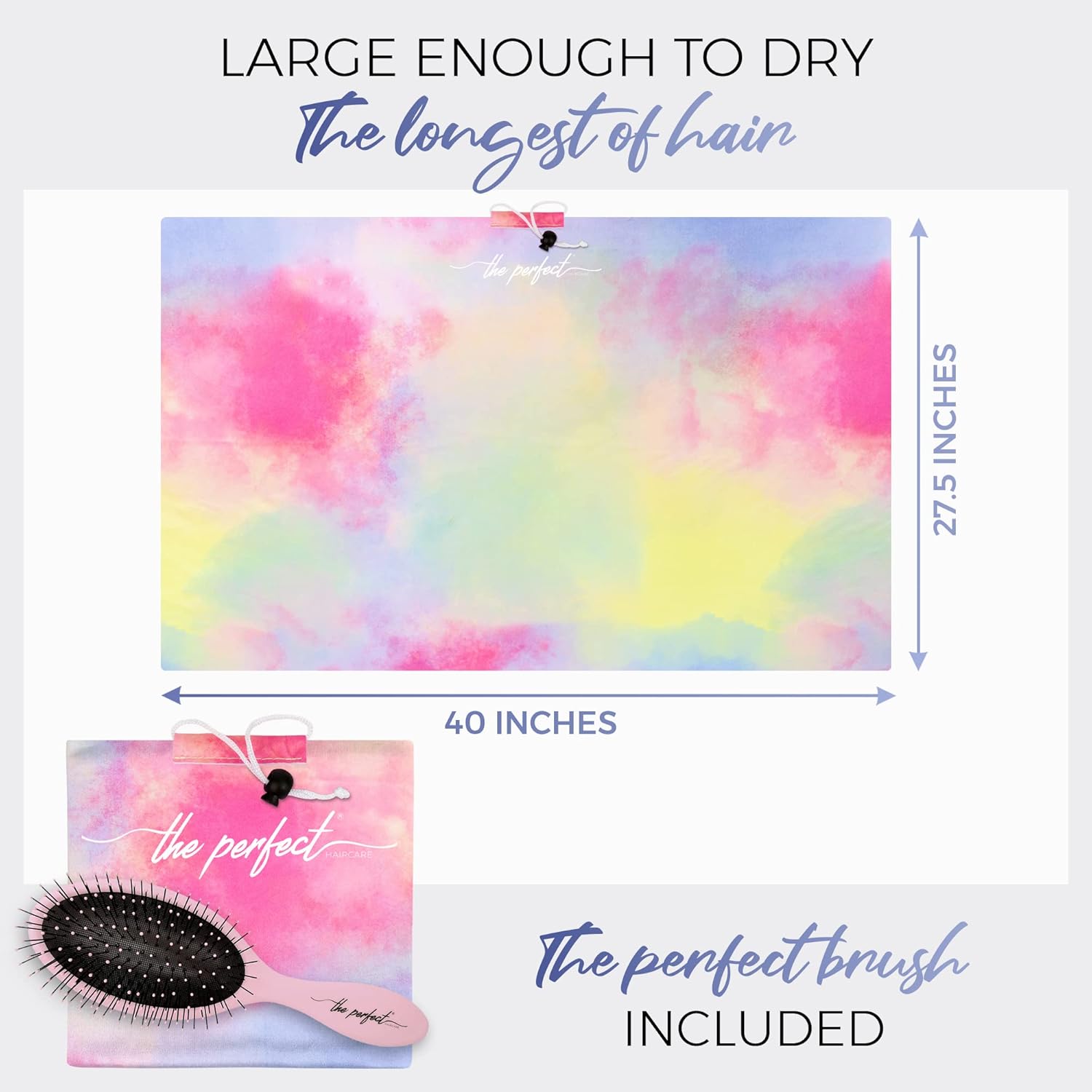 Tired of frizz, and tangled, knotted, unmanageable hair? It is probably your towel! The key to healthy, beautiful hair is properly caring for it. Treat your hair right with fine, silky, and soft microfiber that has stitch-free edges to reduce snags and for durability. Terrycloth towels make hair frizz. Most towels have thick thread with textured loops that snag, tear, and unevenly dry your hair. Do not use these, they will damage your hair. Our smooth, untextured microfiber towels do not damage your hair. They reduce frizz and speed up drying time so switching to our towel set will help you become frizz free. Stylists and Professionals prefer soft, smooth, untextured, very fine microfiber because it doesn’t damage hair. Our Hair Towel Wrap is very fine, silky, smooth, untextured microfiber and preferred by professional stylists and curly haired girls Our hair towel is 30% larger at 40″ by 27.5″ and weighs only 6oz. It is the largest and lightest available resulting in softer, shinier, healthy hair that isn’t matted and frizzy when finished. Forget the blow dryer, our microfiber hair drying towel instantly wicks away enough moisture, drying your hair 70% faster because microfiber can hold 7 times its weight in water. Your hair dries fast and evenly while preserving its natural beauty. Our patented drawstring secures your hair towel so it stays on your head… where it belongs. Due to the thin, texture-free aspect of microfiber, it needs to be machine washed before the first use. Stylists prefer The Perfect Haircare Hair Towel and so will you. Add it to your cart now for yourself or as a gift for the divas on your list. It’s a must for anyone who loves beautiful hair!!