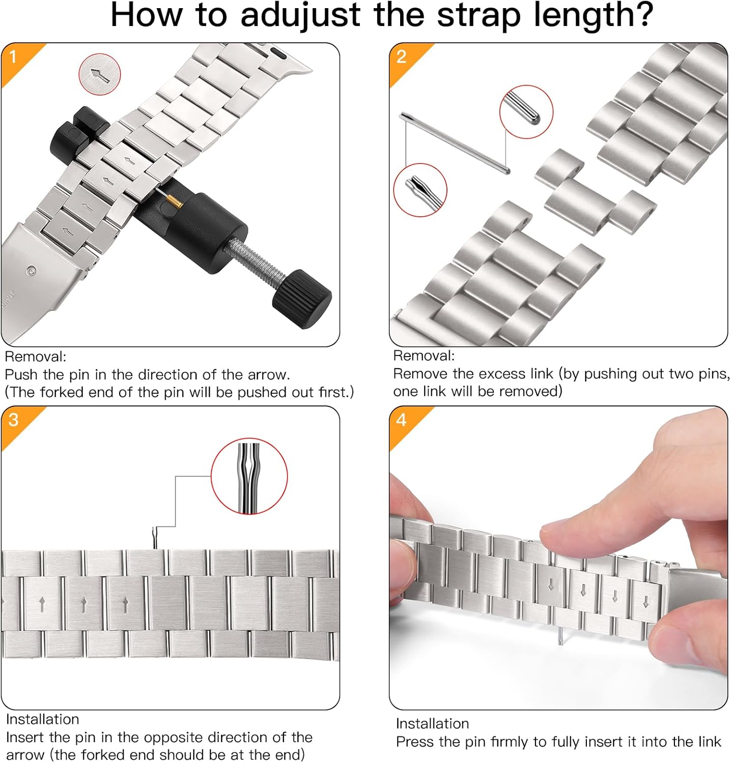 Customers find the watch band classy and feminine in appearance, and appreciate that it fits perfectly on the Apple Watch SE while being easy to adjust to size. The band is well-made, holding up well after a month of use, and customers describe it as comfortable and lightweight, with one noting it doesn’t rub against the skin or pinch. The band is easy to remove with the provided tool, comes with clear instructions, and customers consider it good value for money.