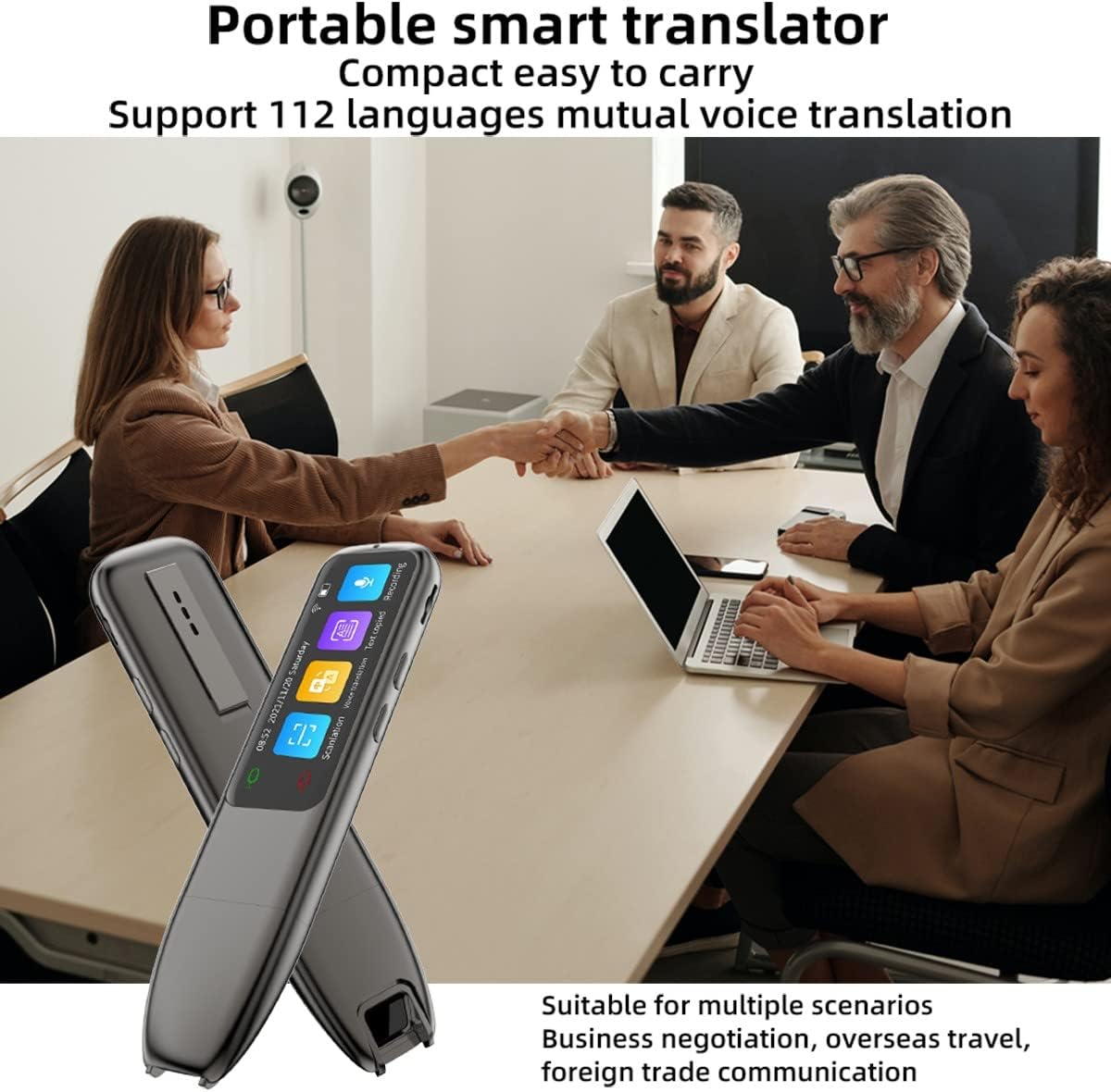 feature:Perfect gift: For lovers, children who study hard, friends and colleagues who work hard, the translator will surprise themMultilingual translation machine comes with offline OCR technology, which can be accurately identified without networkIt can be translated without internet. Offline translation supports 12 common language typesBuilt-in speakers and dual microphones to reduce noise and make the sound louder and clearerForeign language scanning and instant translation, automatic recognition of words and phrasesSupport voice intercom translation between multiple languages, up to 112 languages. The fast recognition rate can reach 0.5 seconds, and the accuracy rate can reach 98%, which greatly improves work efficiency Specification:Network: WIFIStorage: 1G RAM + 8GB ROMSize: 152*3*12mmpacking list:1* Scanning translation pen1* data cable1* User Manual