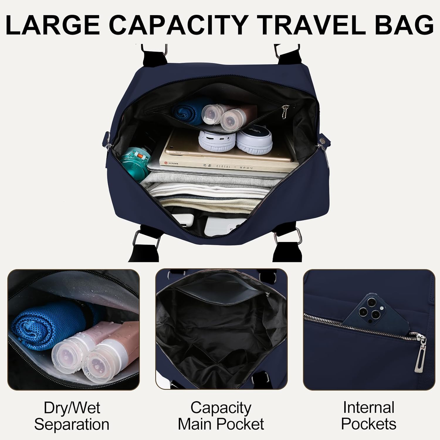 【Large Capacity Travel Bag】: With its spacious design, this travel duffle bag provides ample room for all your belongings, making it perfect for longer trips or those who prefer to pack everything they need in one duffle bag. You can put in clothes, shoes, cosmetics, etc. Multiple pockets inside to categorize your items and keep your belongings organized.