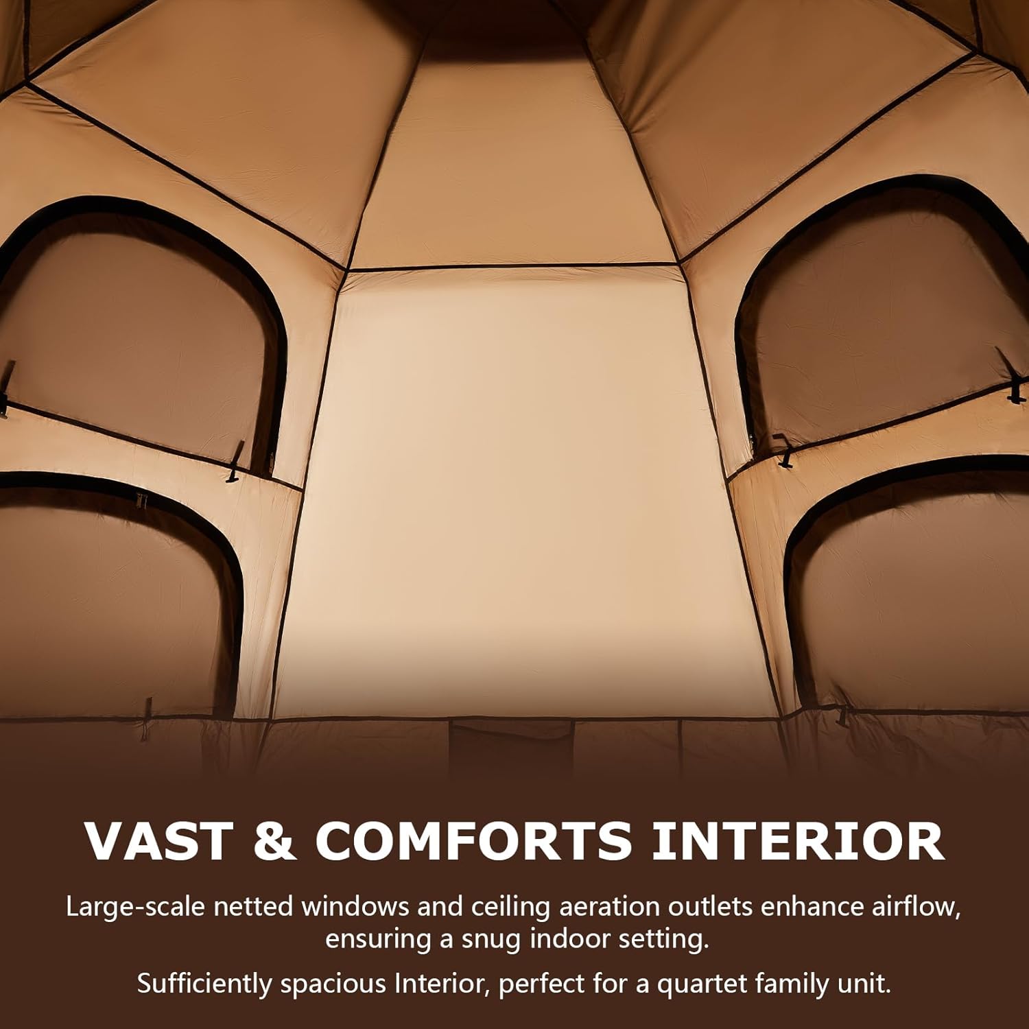 Expandable Vestibule: The new expandable design allows you to create a simple vestibule right next to your tent, 4 large mesh windows ensure airflow, perfect for gathering, chilling, and entertainment, making your outdoor adventures even more fun and enjoyable.