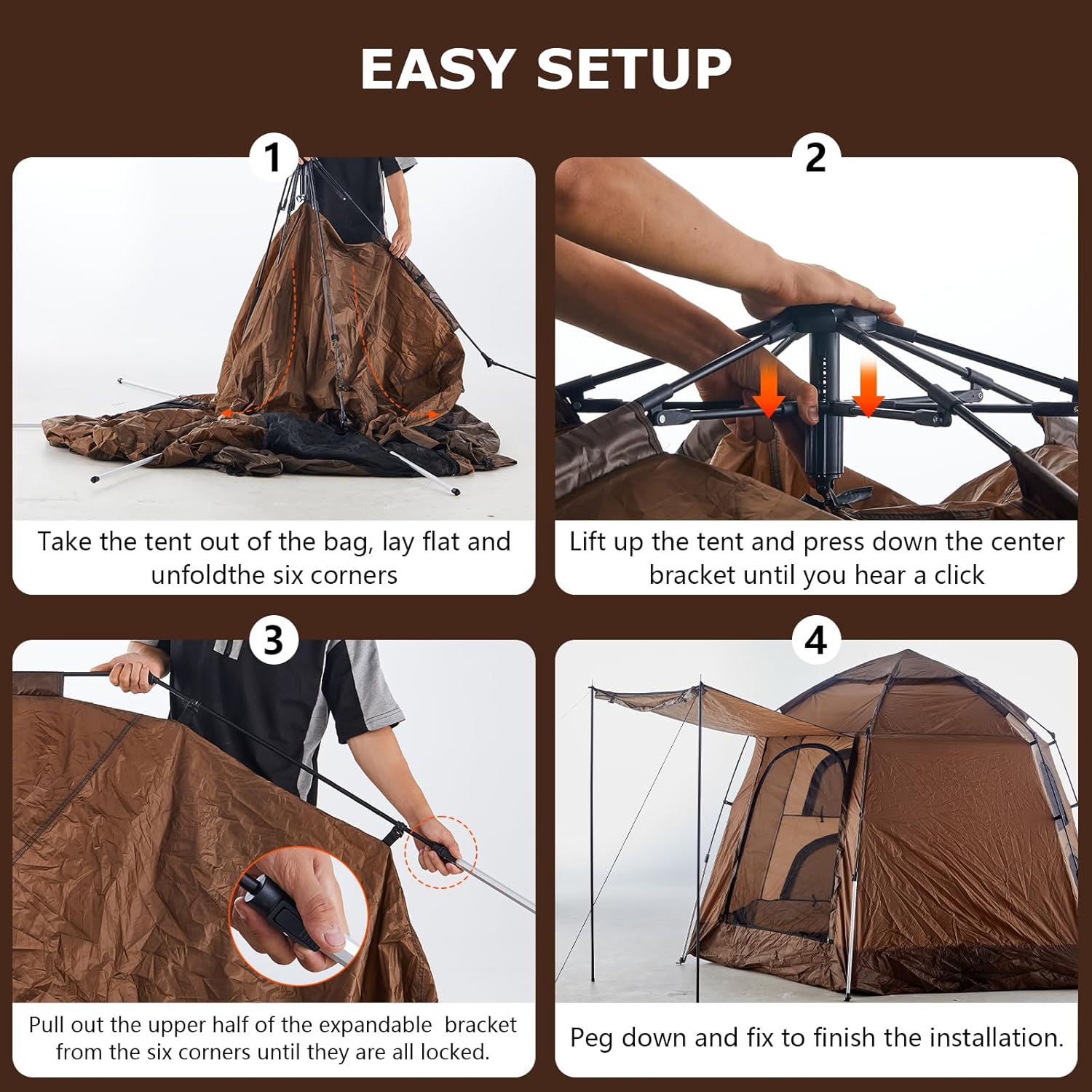 Convenience & After-sales: Despite its large size, the tent is designed with convenience in mind, being easy to set up and dismantle quickly, and can be assembled effortlessly by one person. It’s portable and suitable for various outdoor scenarios. Prior to this, if you require technical support or have any other inquiries, please don’t hesitate to contact us. We are dedicated to serving you.