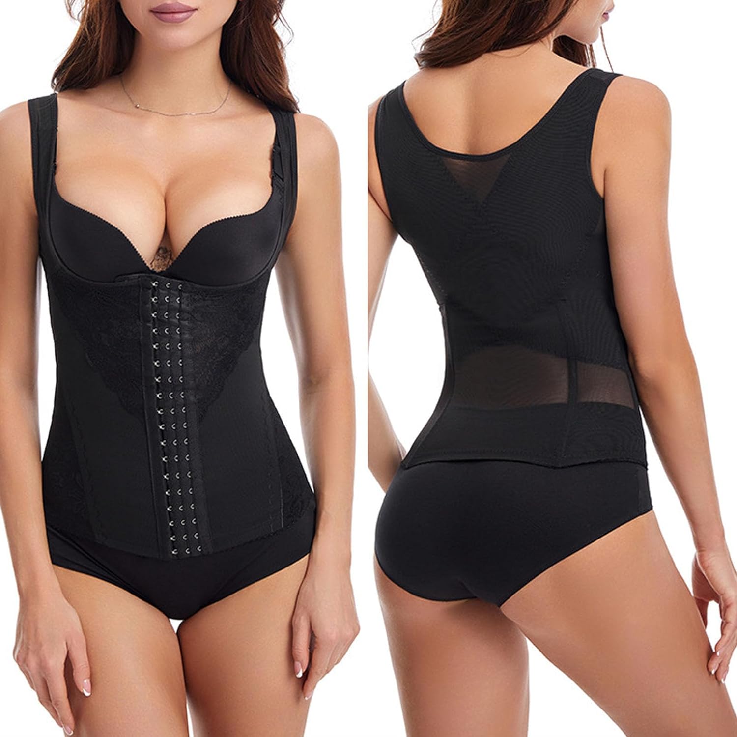 TUNUSKAT Waist Trainer For Women Sexy Lace Corset Shapewear Vest Tummy Control Body Shaper Plus Size Stretch Waist Cincher