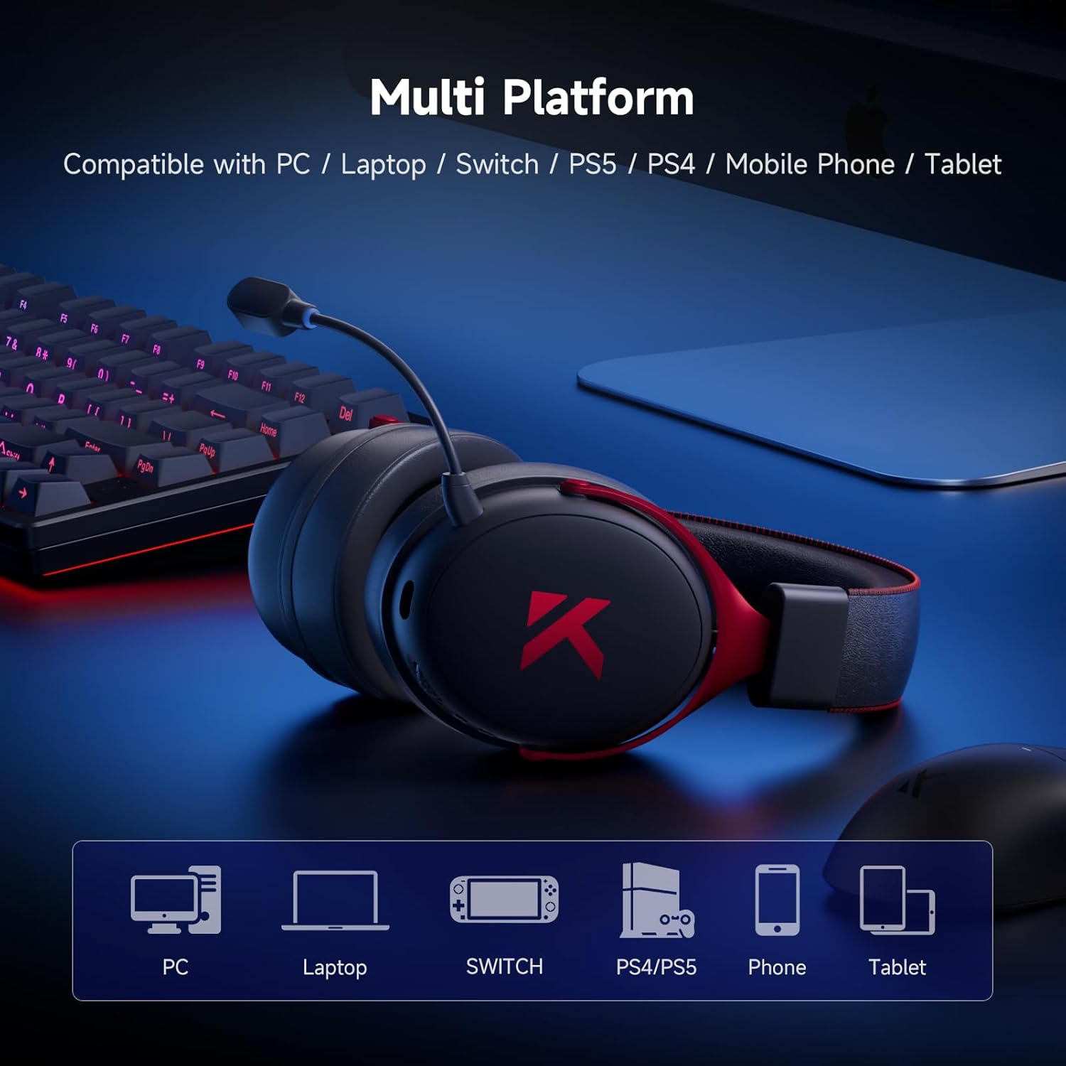 【Tri-Mode Connectivity for Multi-Platform】Our ps5 headset wireless supports 2.4GHz wireless, BT wireless, and wired connections. Compatible with PC / Laptop / Switch / PS5 / PS4 / Mobile Phone / Tablet. Designed to Fulfill All Gaming Demands Game Mode 1 / Game Mode 2 / Music Mode.