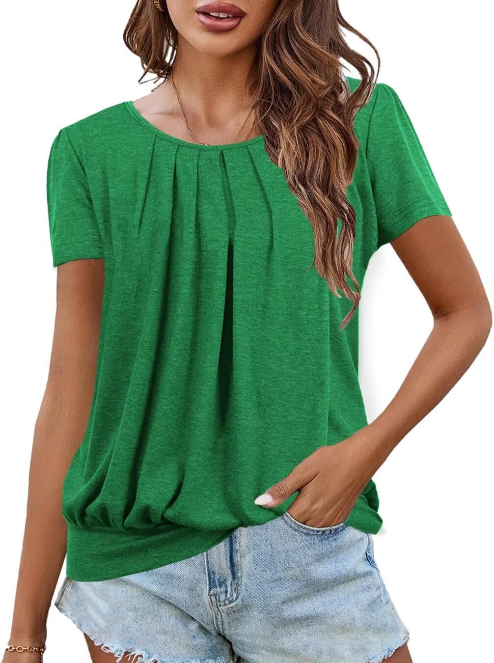 VAHRUTA Women’s Fashion 2025 Summer Pleated Shirts Short Sleeve T-shirt Tops, perfect to wear with leggings, jeans, leggings, shorts, skirts, yoga pants