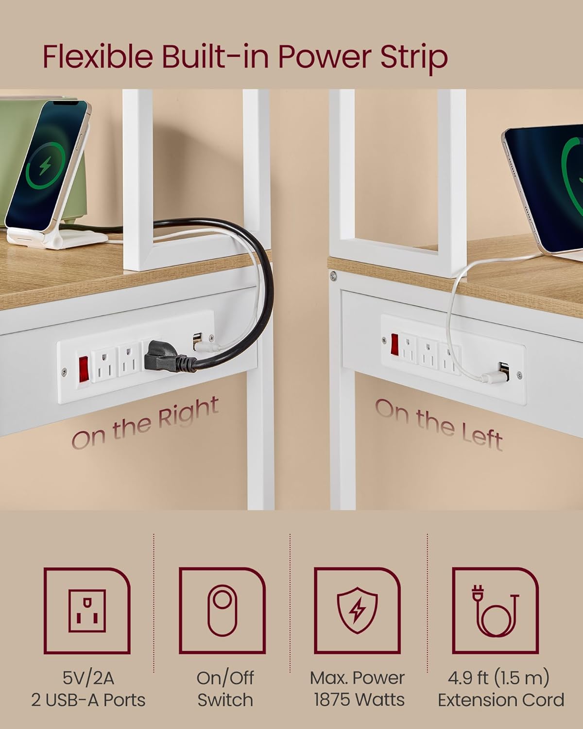 【SAFE, FLEXIBLE POWER STRIP】The power strip features 3 AC outlets and 2 USB-A ports for easy charging, along with an on-off switch and overload protection for added safety. Plus, it can be installed on either the left or right side to suit your needs