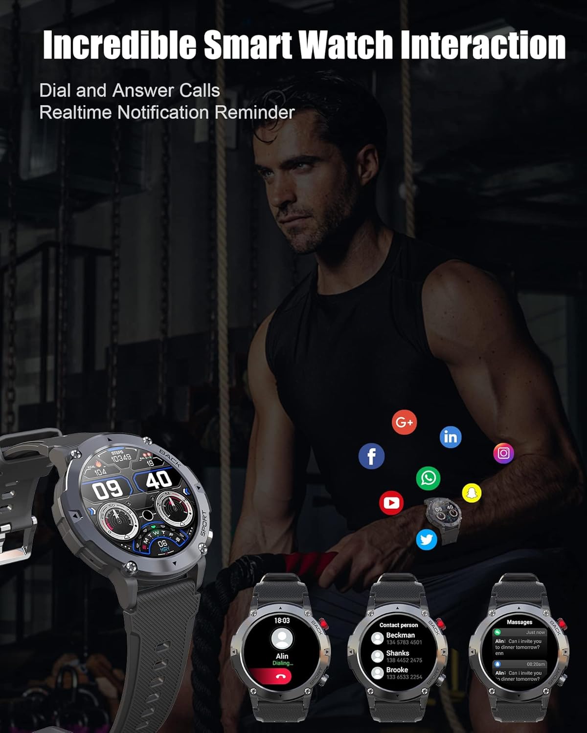 100+ Sport Modes & 24H Health Monitor: With an expansive selection of over 100 sport mode, including walking, running, mountaineering, cycling, and basketball , VIRAN tactical smartwatch becomes your personal coach. Take charge of your well-being 24/7. With continuous heart rate, blood pressure, and sleep monitoring(Not a medical device, themeasurement data is for reference only) , you can track your health and fitness goals effectively. Stay proactive about your wellness.